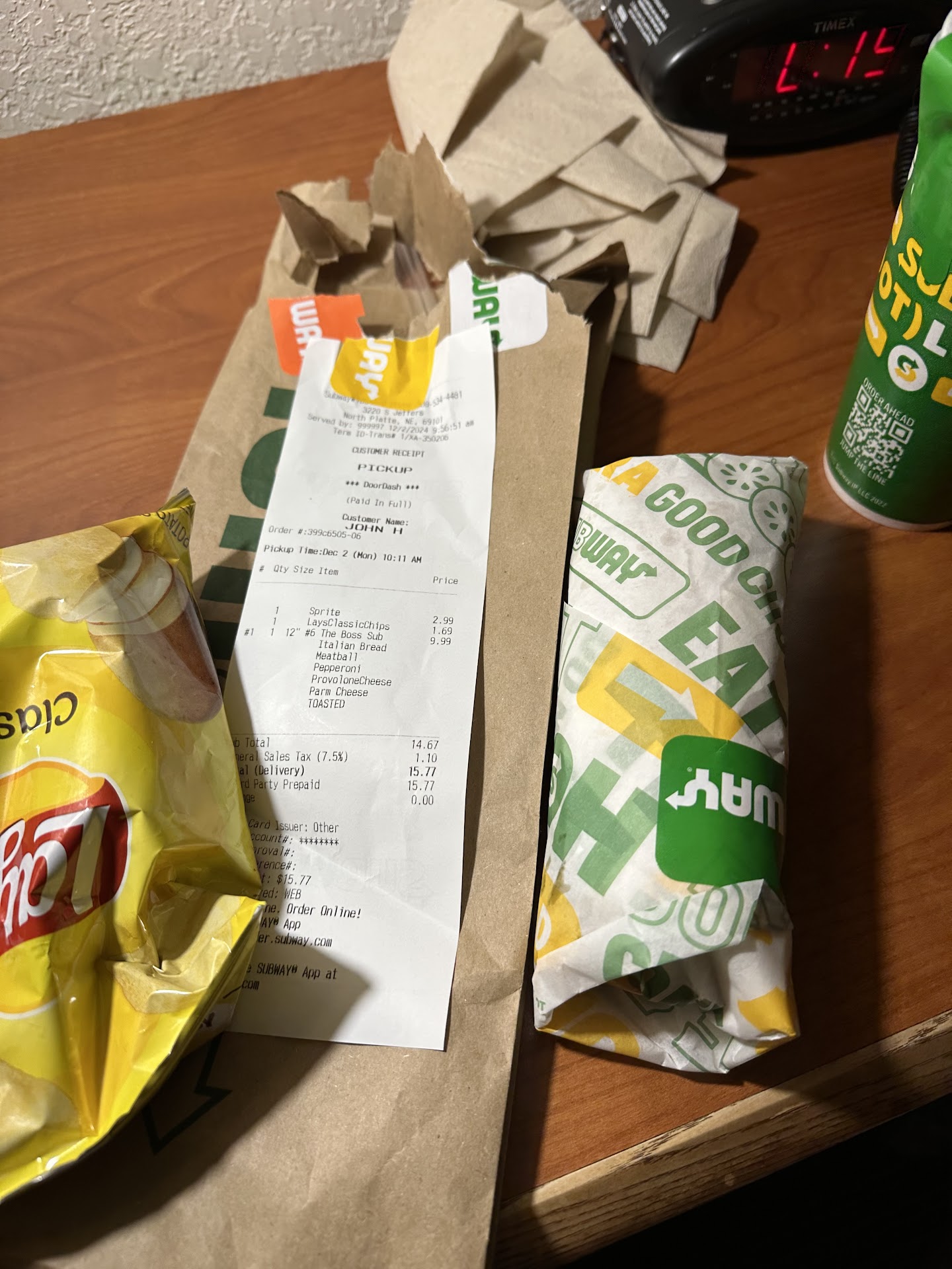 Typical gas station subway fair (which Rob has no control over) so the fixins' were "aight".