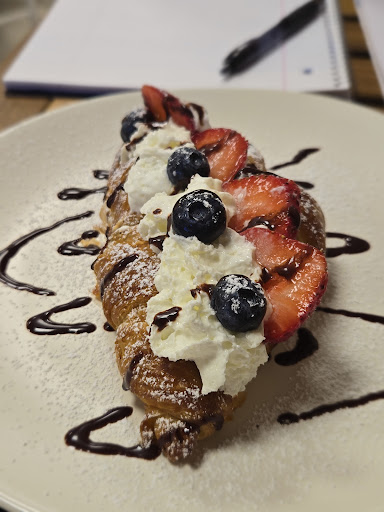 Read moreWe needed a place for a small meeting and what better than a coffee shop. We found them on Google maps, what a quaint little hidden gem. When you first arrive the shopping does give you the vibe you will get when you open the doors. It is well decorated and welcoming. The place is super clean, the dessert and food options are plenty and the service was top-notch. We orderd coffee, desdert and a sandwich to share. The coffee was brought in a beautiful glass cup to our table along with our dessert. The dessert was a small honey cake that was a whole experience in itself. We then ordered a turkey/bacon croissant that was heated perfectly and delicious. We needed to continue our meeting so we shared a croissant with Nutella and berries. The whole meeting was filled with great coffee, food and conversation until...small kids started running around and screaming. We had to cut it short because the room is not that big. Besides that experience we will definetly try again but next time I won't...