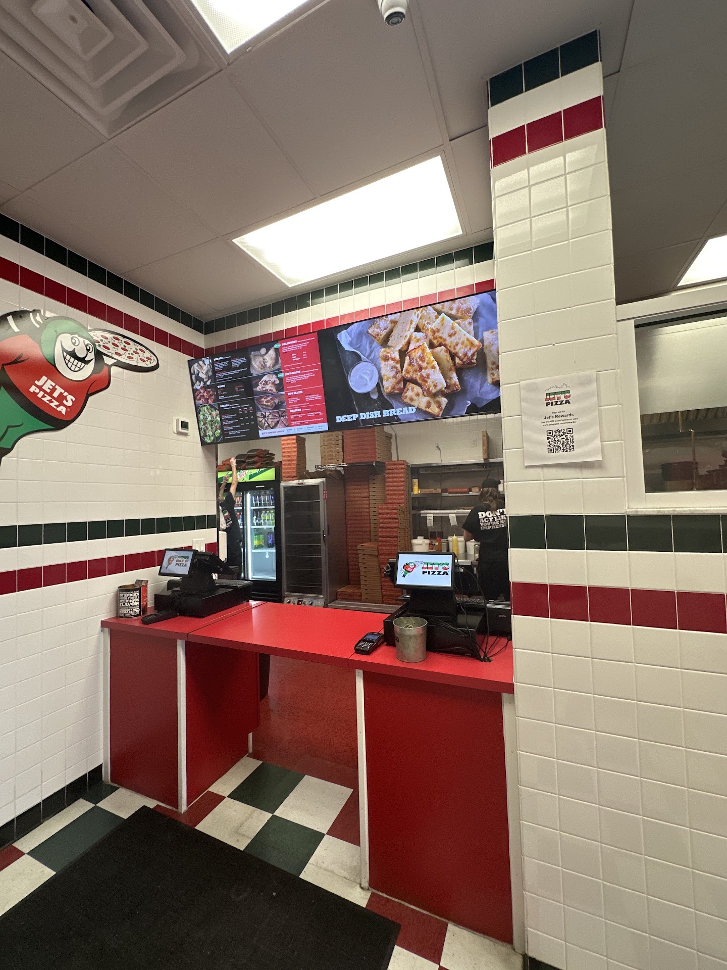 I HIGHLY RECOMMEND AVOIDING THIS LOCATION. They've lost my entire household's respect and business. Check your ingredients and make sure your employees are rotating properly and wearing gloves, before someone gets hospitalized with food poisoning. I wish I could leave no stars for this place. We ordered to pizzas last night (5/24/22), (which price alone was a bit ridiculous compared to other places). Right off the bat from the first bite the whole pizza tasted off. The crust had an off taste, (was supposed to be butter and garlic, but tasted more like the garlic had expired well past its prime). (Tasted just like my garlic I tossed the other day that was no longer okay to use smelt). The sauce had a real funky taste to it and the cheese..just no the cheese was so awful to have to chew through. It was so rubbery and had a bad salt taste. (I know mozzarella is a salty cheese that can get a rubber texture but for a fresh out of their oven pizza, there was no excuse it tasted like days old melted cheese. Reminds me of a pizza you left out for awhile on the counter and then decided to reheat and take a chance on) I only managed to get through one slice and that was it's own struggle. I was sick IMMMEDIATELY after finishing my slice and am STILL feeling the uncomfortablness in my stomach from this pizza. My ENTIRE HOUSEHOLD has been in and out of the bathrooms ALL night since eating from this establishment. Learned our lesson the hard way on trusting this Jets Pizza location. Next time we will just order from somewhere else, plus we would get more food for the same price as 2 deep...