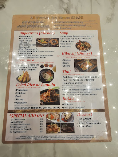 Read moreSo first, I'll start with the negatives to give a clear understanding of why it was rated the way it was. First negative for the Sweet Potato Roll, the Sweet Potatos were a bit undercooked, they weren't very soft to chew through and were also visibly undercooked. (Update: 2 of my pictures now show from a certain direction what that specific roll was.) Secondly, it was taking way too long to make the rolls, especially compared to other sushi places around, but ill compare it Tokyo since its also an AYCE Sushi restaurant. It was taking about 20 minutes to make the rolls that we had ordered tonight. Of the rolls we ordered i think only 1 or 2 of them are rolls we've never seen at other restaurants, however, every other roll was one that we've seen and have ordered before, but it's never taken that long to make 4 rolls at other restaurants. Implementing a time limit then having it wasted by taking 20 minutes to make the rolls feels a bit too planned out. The positives: aside from the Sweet Potato Roll, everything else was super delicious. The Rock and Roll was definitely one of the favorites we decided on, of the rolls we ordered. Our server/waitress, Makayla, was really nice, very social with us, made sure we got drink refills when we looked like we needed one. Prices for the sushi are very decent. Atmosphere was pretty nice.. upbeat and lively. Though this particular detail didnt bother me very much, but rather my girlfriend, she said it was too bright inside, however we rated overall a 5 for atmosphere because it wasnt that big of a deal to us.