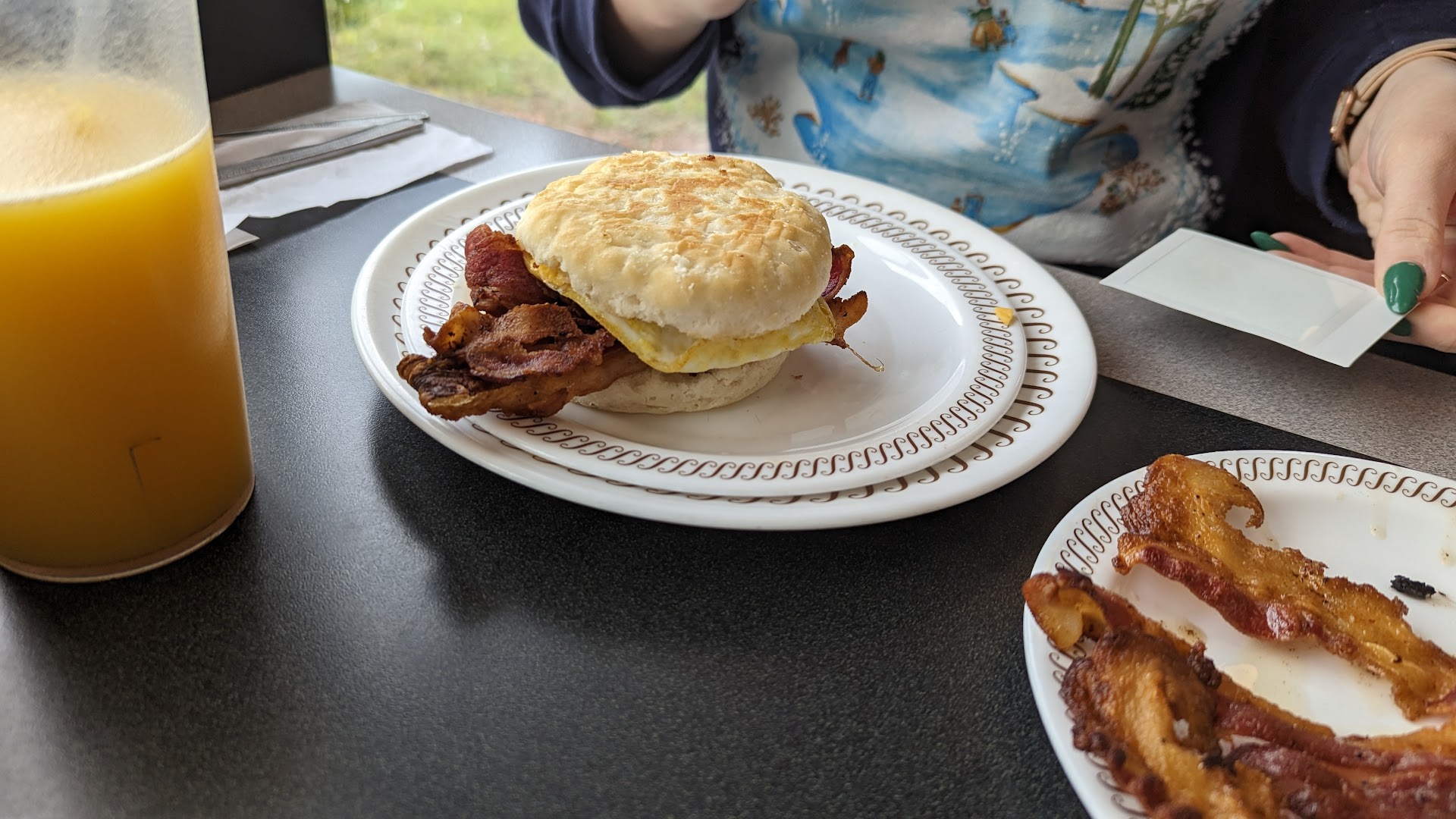 Read moreFirst time there since opening. Definitely some food quality issues. Might be the rush of call in orders due to Covid but we ate there. Waffles are taken out as soon at the beeper goes off, not totally cooked all the way, soft and doughy. I ordered my hash browns Smothered and covered (onions and cheese) and when it came, they were plain. I advised our server of it and she said âok simple fixâ I watched as my hash browns got thrown back on the flat grill with fresh chopped onions and not even given time to sautĂ©. Literally 2 mins go by and they come back on same plate with still pretty much chopped up raw onion on bottom and a slap of yellow sliced cheese on top that I could still pick up as a slice and it was not even melted. The bacon was hard and flat as a river rock like it sat under a flat weight until it hit the plate and has the texture of biting into a kettle cooked chip. Only gave it a second star because our server was nice, and it looked like she was a little embarrassed herself when she brought the plate back out. This is only...