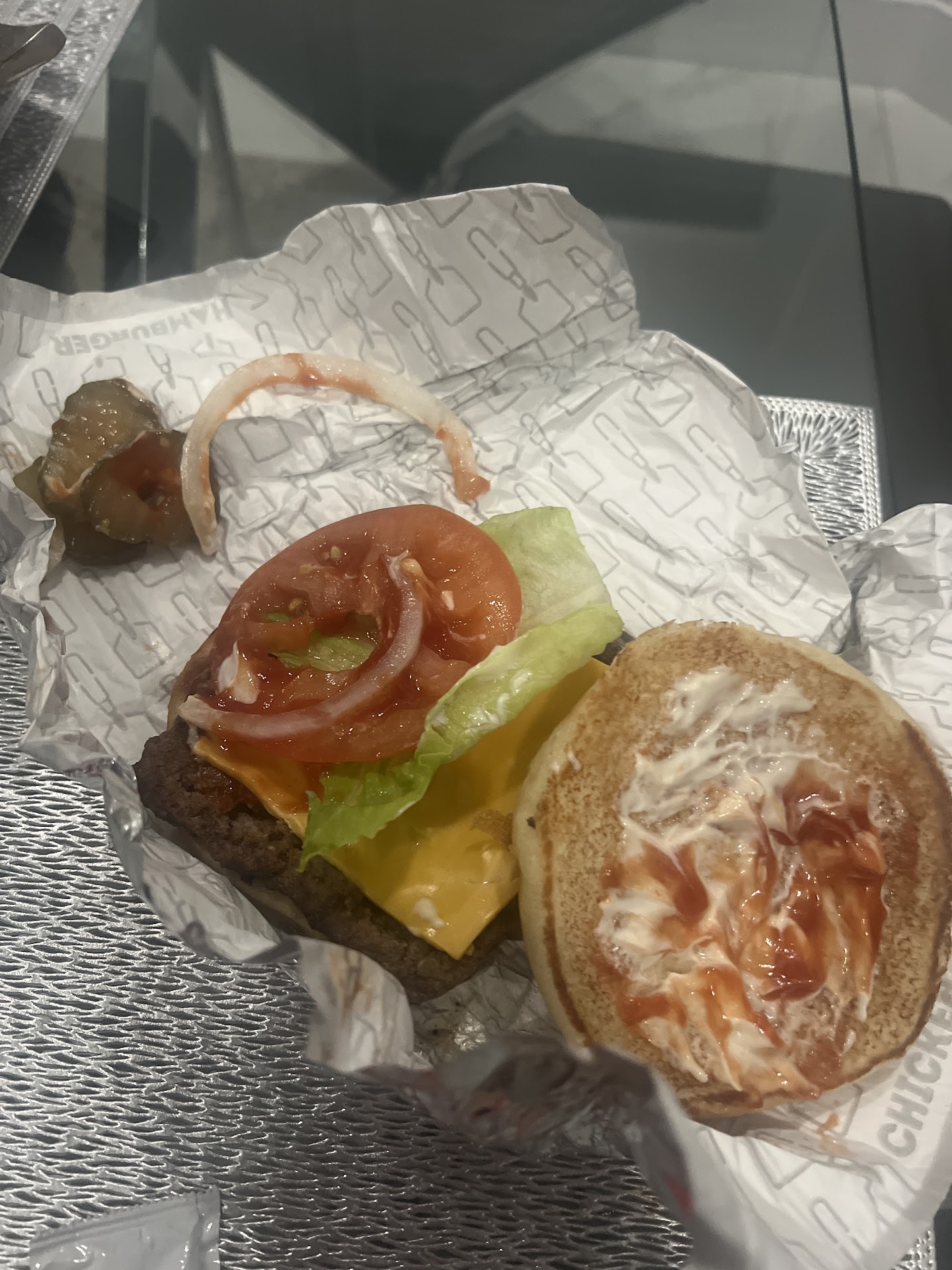 Food was delicious as always. The only problem that I had was the manager. She was what you describe as a "KAREN". That morning, Wendy's was shorthanded on personnel. Because of this, the dining room was closed. Because I had a tractor trailer, I could not go through the drive-thru. So I ordered my breakfast through the app. I walked up to the drive-thru window to get my food. She opened up the drive-thru window in a very bad mood and raised her voice at me and told me that I could not walk up to the drive-thru window. I explained to her that I could not go in the dining room because the door was locked and I had to walk up to the drive-thru window because I was driving a tractor-trailer that would not fit at the drive-thru. After she gave me my food in a very grumpily way, I asked her if this is the way how she treats all customers? She looked at me like she was really mad and she slammed the drive-thru window in my face. I tried to get her attention for her to explain why she was being a menace to me but she totally ignored me. I very much like Wendy's and I go there frequently because there's many Wendy's at truck stops. But her attitude and demeanor towards me was unacceptable Behavior. I will continue to go to Wendy's because I very much enjoyed the food but I hope I never see her again unless I get some type of apology from her. It is just totally unacceptable for a manager to treat a customer in the way that she treated me!...
