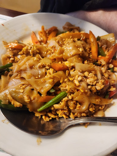 Iâm rushing and donât check my order⊠(even tho I didnât have time for them to correct the order). One of my coworkers has a sensitivity to carrots and onions đ so she requested no carrots or onions in her drunken noodlesâŠ. And she got carrots and onions, so she could not have any of it. They did not put carrots or onions in the panang curry as requested but the sauce had an odd slimy quality. Iâm unsure why. I have had their curries before and they are usually great!