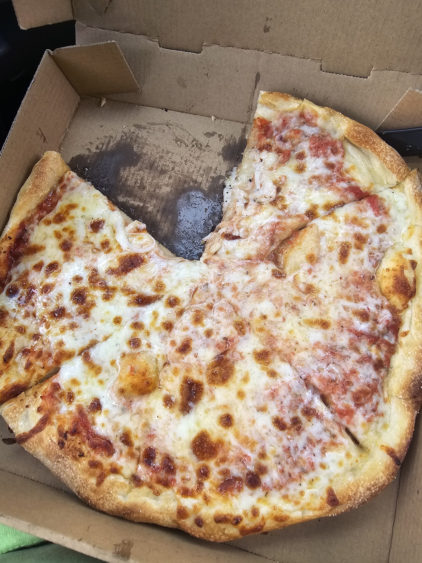 Cheesy bread-crisp yet fluffy on the inside. Nice amount of cheese. I just wish it had Italian seasoning or parsley in it and an option for marinara on the side.