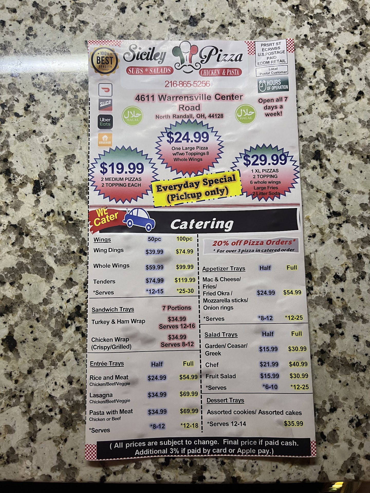 My Husband and I tried Siciley Pizza for the first time yesterday and we were pleasantly surprised! The pizza's were great, reasonably priced and the service was nice as well when we picked up the order. The pizza's we ordered were excellent. We ordered 3, the all meat, the pesto primavera and the steak philly. My husband is not an out of the box pizza person and sticks to a traditional topping pizza, however he incredible enjoyed the steak philly pizza and is still ranting and raving about it this morning! The toppings on the steak philly were equally placed, the veggies still had a little bit of crunch and the flavors were incredible. The pesto primavera was rich in flavor, I do wish it had a protein with it such as chicken but all in all it was delicious. The all meat was also excellent. I did order garlic crust on all three and I don't think it was added. But the crust was soft on all 3 and thankfully not hard, had a sweet taste too it. The ratio of crust verses toppings was great. Not all bread pizza's! We look forward to returning and getting some...