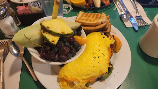 I had the Chorizo Omelet (special) was enormous -- way too big of a serving and to know they charge for sharing a plate -- ridiculous. There was good flavor to the omelet as well as the grits. I was not offered toast selection but was given three pieces of white and one sourdough???