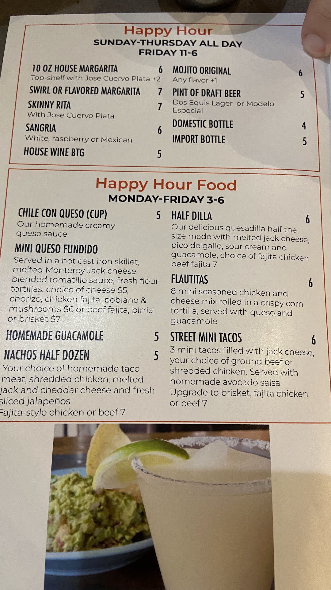 Going there between 3-4 is the worst experience I’ve EVER HAD! The manager was keeping the wait staff hanging around and joking while my food sat in the kitchen getting soggy. We were dying for a water re fill being it was so hot! Had to walk to the bar to get it. Our food came out crusted over with a film from Sitting under a warmer too long. The appetizer was completely dismissed. It FINALLY CAME. Then when I requested pico with my food, (that I already ordered) the waitress kept arguing, it doesn’t come with the meal. Oh dear lord. I told her this was too much. The manager came over and asked how everything was. I said not very good. Well well, he just made the comment they do the best they can do. Never NEVER WILL WE EVER EAT THERE AGAIN! They are horrible!!! MANAGEMENT IS GOING TO RUN THAT PLACE DOWN!