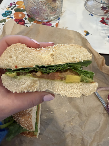 Read moreWe were really excited to go have lunch there, but that quickly turned to disappointment. Once we were inside, we realized there was no place to sit and eat and we had to take our food to go. So, after it took nearly 20 minutes to make 4 sandwiches, we left and went back home to eat them. I would have thought with all of the time it took to make the food, that it would have been made well, but when we got home and sat down, they all looked pretty pathetic and lacking. I also asked for no onion on one sandwich and it came with onion, but no cucumber and the smallest amount a cream cheese and avocado I have seen on a bagel. I took it back, the girls at the front offered to have it remade. Still took the guy forever to get this one made too. The only input from the manager was yelling âSorry!â from his chair at the very back of the kitchen. Overall, very disappointed and donât plan to be back...