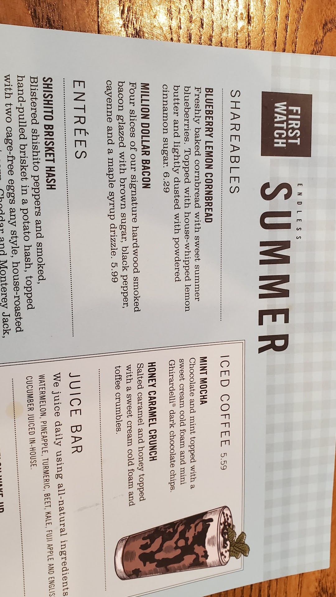 Read moreMy family and I went into First Watch today for the first time at some friend’s recommendation. While waiting for our table I noticed a small sign hanging by the cash register saying they only gave out straws upon request. I was beyond happy to see that and immediately took a picture of the sign and shared it on Instagram. Once we sat down my husband asked for a coffee and asked for almond or soy milk to go with it. She told him there should be silk creamers on our table and after explaining that he didn’t want creamer just the regular soy milk she said again, obviously annoyed, “we only have the creamer on your table”. I then asked, “you don’t have any plant milks?” I was confused because I thought I had seen a post on social media about First Watch diversifying their milk options. Exasperated she said, “no we only have creamer.” I said, “ok, I just wanted to double check because we have a diary allergy. I have to carry an epipen for my son and probably would have never come if I knew they didn’t have alternatives. My kids then ordered lemonades and when our waitress brought them she put down two straws(which we didn’t ask for). My husband and I decided at this point to leave-the options were extremely limited for us and our waitress was clearly beyond annoyed with us. When we got up to leave I went to the register and asked about the sign saying they didn’t hand out straws. I said that our waitress gave them to us without asking and didn’t understand if they had a policy against that why that would happen. He scoffed at me and gave me a non answer. Then told me I could see the manager if I wanted. But honestly after two very unpleasant experiences with different employees I just needed to leave. BEYOND disappointed with our experience here. Would not recommend to anyone who needs ANY special...