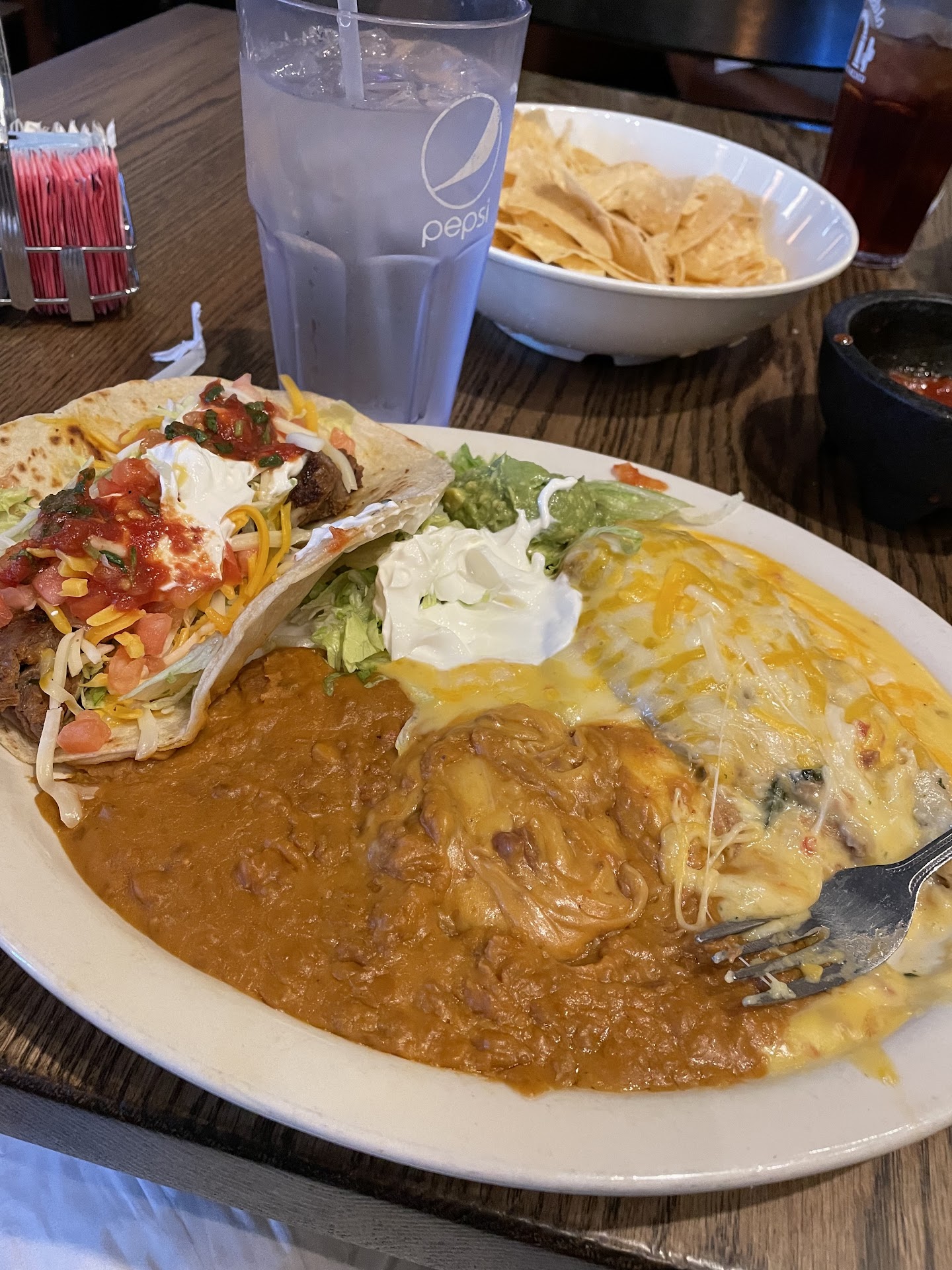Ā Ā Ā Read moreIt was our first time here. We thought we would give it a try rather than go to our regular places something to try new and exciting! We got in right away on a Friday night that was exciting. Her server was a nice looking young man, but not very attentive. He was very distracted. He was looking at other people at other tables he kept counting the tables he could barely read his own handwriting however, he did get our order, right amazingly enough after we got our order he was much more attentive other staff members and I assume managers, they all made a point to come by and check to see if everything was OK that was very very nice! I had to Mi Tierra Plattet which was a soft fajita taco beef and a cheese chili, Relleno with queso refried beans no rice. Darrell had the Amigo platter which was cheese, enchiladas, and a crispy beef, taco beans and rice. They gave us when we first came in a very large bowl of chips and a large bowl of salsa. The salsa was good. The chips were fresh delicious! My chili Relleno was very good. The beans were good. I did not care for the soft fajita taco. The fajita meat just really didnāt have a good flavor. Darrell said his was OK. He ate pretty good. I donāt know that we will be back. We will wait and see. I gave the food five stars because mine was really very good except...