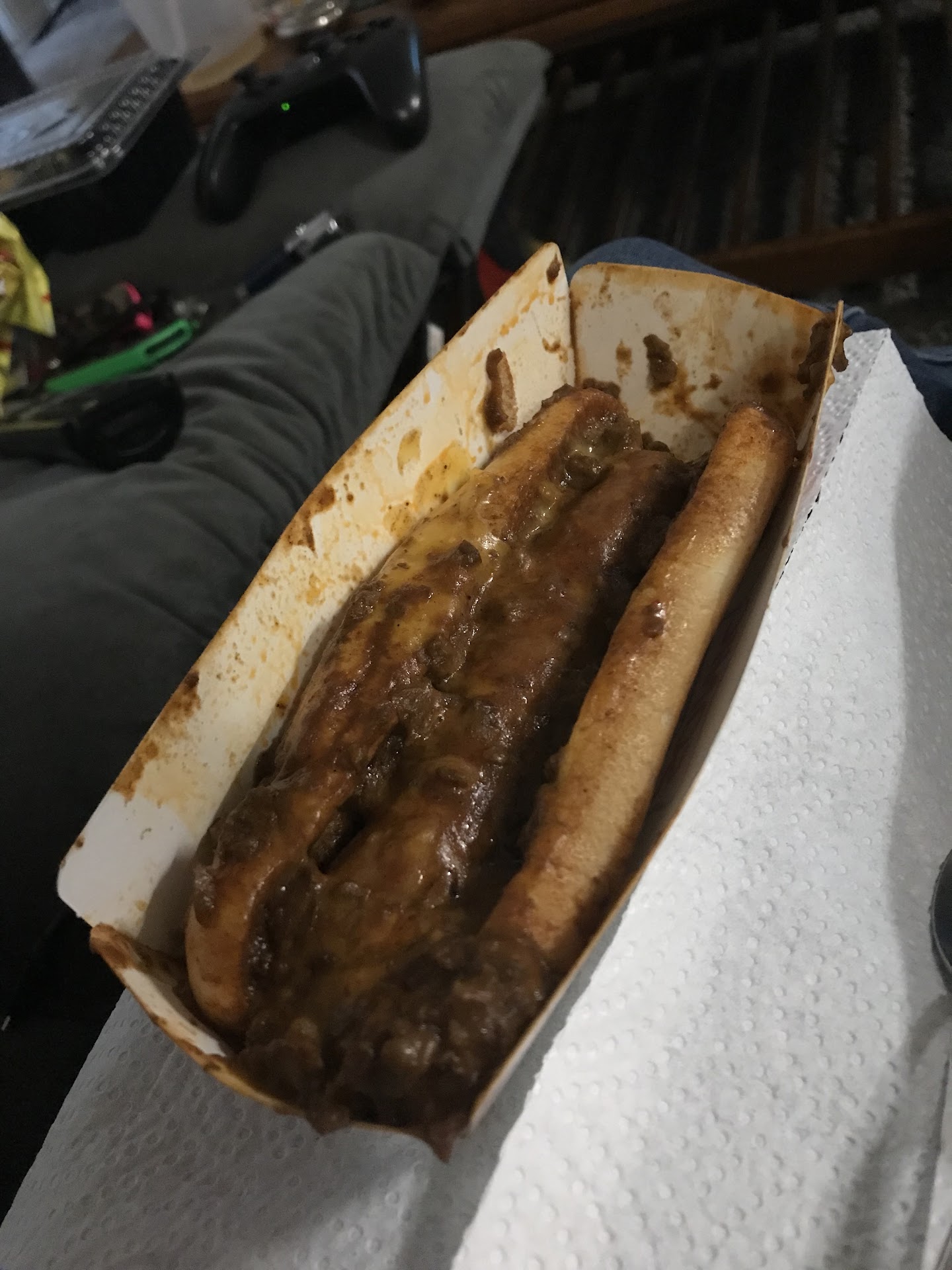 Today, my Chili Cheese Coney was presented to me upside down, and leaking out all over my other food in the bag. Doesn’t this look delicious?