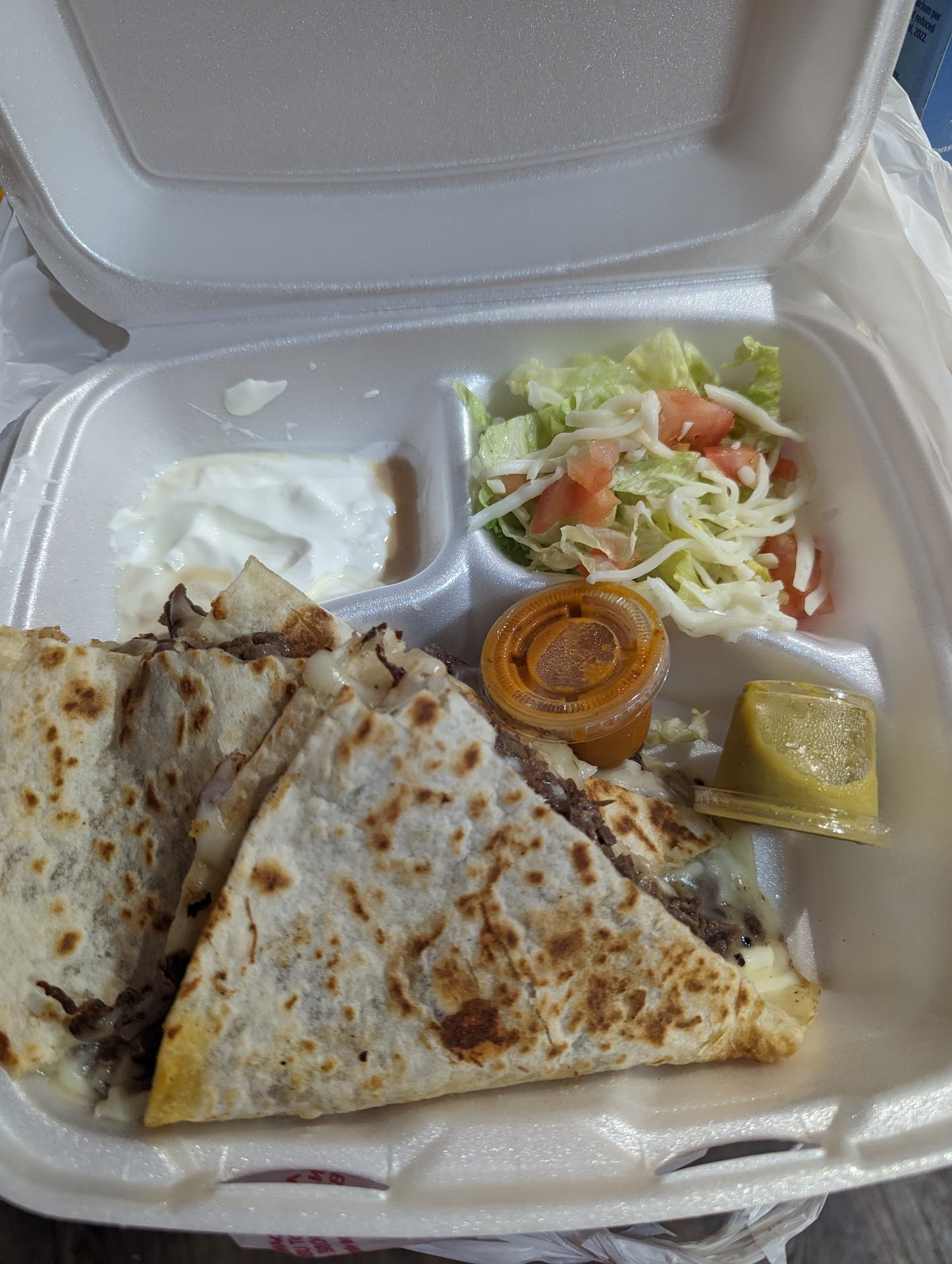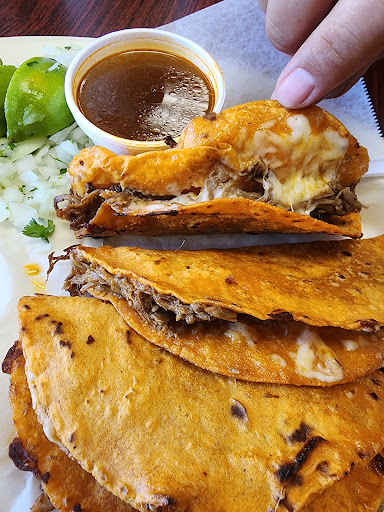 The quesabirria was okay. That's the reason I give it a 4/5 the meat could have been better. It tasted more like menudo or pozole. The seasoning is what was off. The meat was more chewy than expected and the tacos lacked cheese.