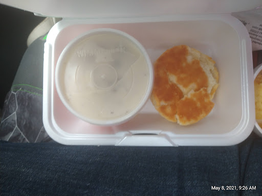 Placed a order on the app for biscuits and gravy and scrambled eggs. When I arrived the kid came out right away with my food that was awesome. I drove away cuz I was getting it to go and got on the highway went to pull it out to eat on my drive and there was no silverware. Who gives somebody something to go with no silverware in it. So I called up there just to let them know you know it was missing before I checked my food. when I pulled my food out the scrambled eggs were not even a fourth of the way full. I have never been to a Whataburger that the cup was not full. the biscuit should have been wrapped in paper and it was just thrown in the Box. Oh and don't even thing the food was hot, no, try room temp.
