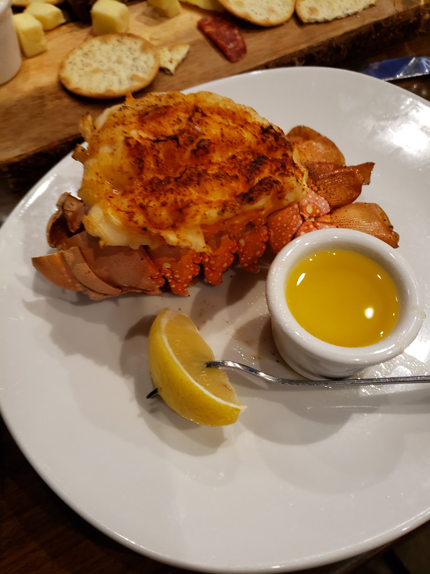 The hostess proceeds to escorts us to our table, where we were greeted by our server. We ordered 2 Dragon Berry Mojitos and an order of their Devil's on Horseback to start. Several minutes go by and the bartender brings our drinks over to us, and goes here are your drinks and walks away. The drinks he brought over were the wrong drinks, but we were there to celebrate, so though they were the wrong drinks they were still good and we didn't want this minor inconvenience to ruin our night. The app soon after comes out and I will give them credit, they were delicious.