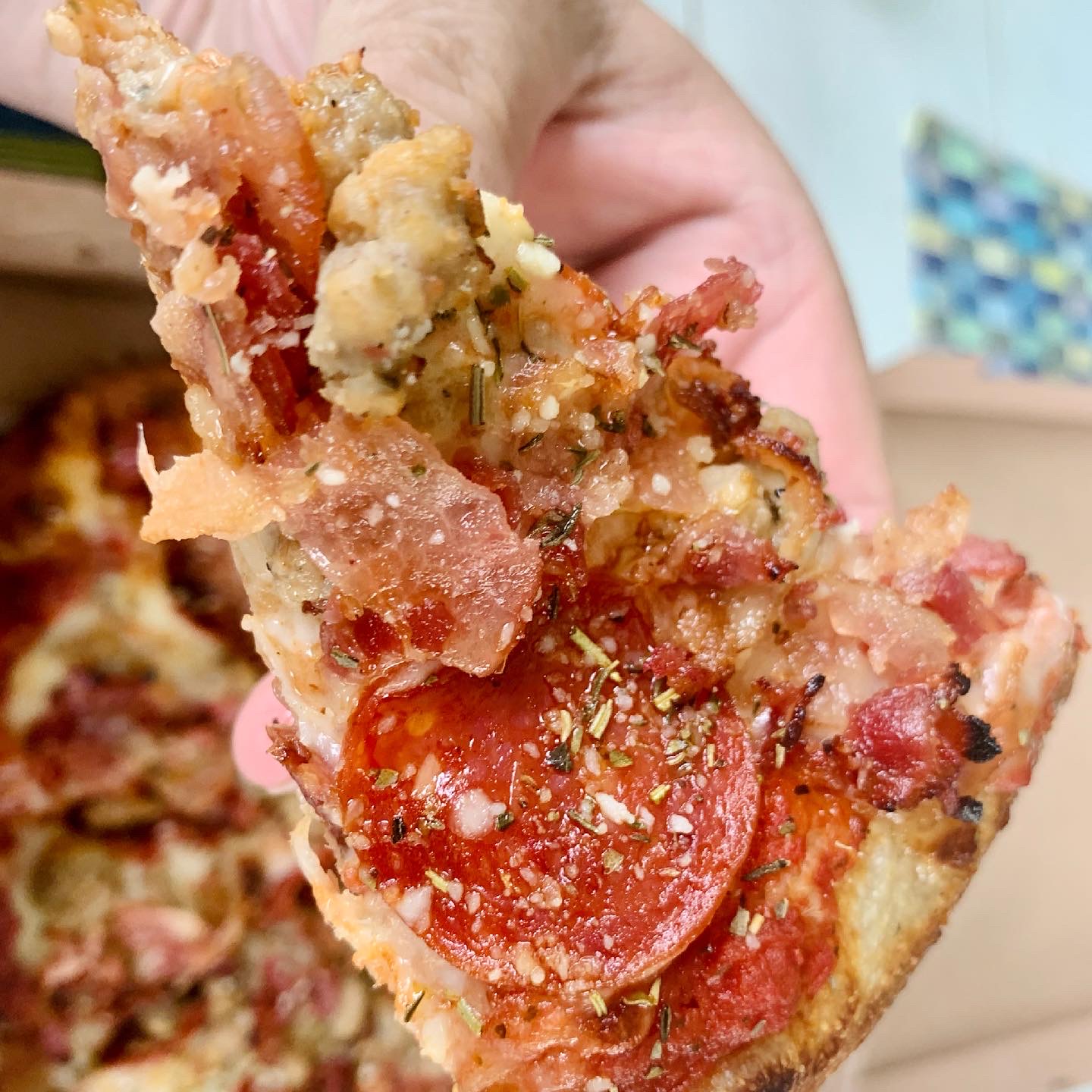 Smash Pizza Express 6349 Jaycox Rd ( in the Zip-thru Drive-thru) I followed the buzz directly to this place. so my opinion. good pizza. prepared quickly. we tried 3 personal pizzas. ( which are just a small pizza renamed ) we tried cheese, we tried pepperoni and “the butcher “ - bacon pepperoni and sausage. the crust is crunchy and good. good balance of toppings. ( my only complaint is the sauce is very lightly applied. my son said it was like a flatbread ). so we were divided. my cheese-friendly son loved it myself and my other son, we are going to ask for extra sauce next time. there will be a next time ! 🔥😃. note the last three pics ( menu, restaurant interior and sign , were all screen grabs. my pics were strictly food. ) — eating lunch at SMASH...