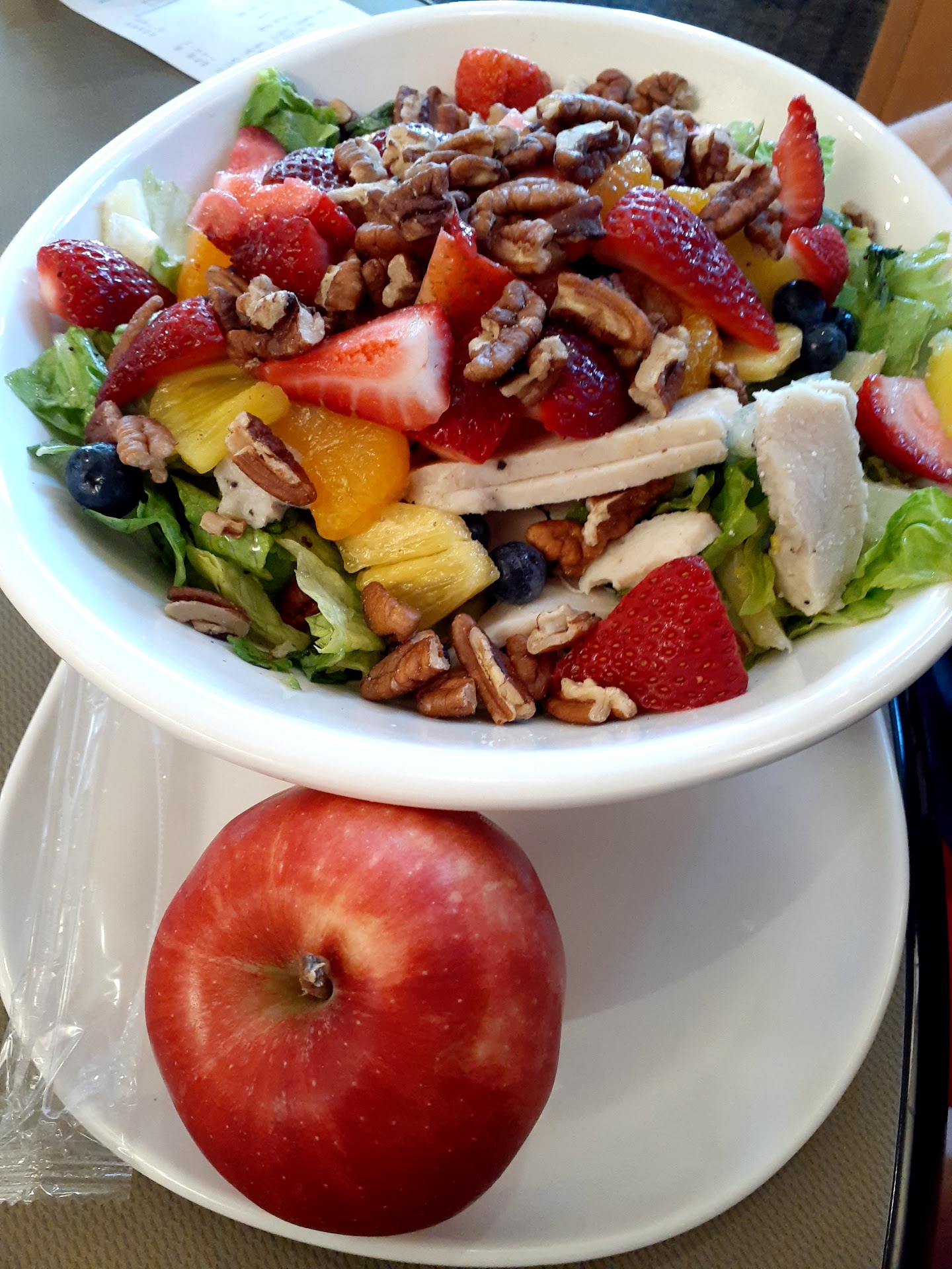 I went to this location for an early dinner (4:45) because they sometimes run out of items. Well, they did. No strawberries, strawberry dressing or sliced tomatoes. That eliminated the items I was planning to order but there were other perfectly acceptable alternatives, disappointing but no real problem.