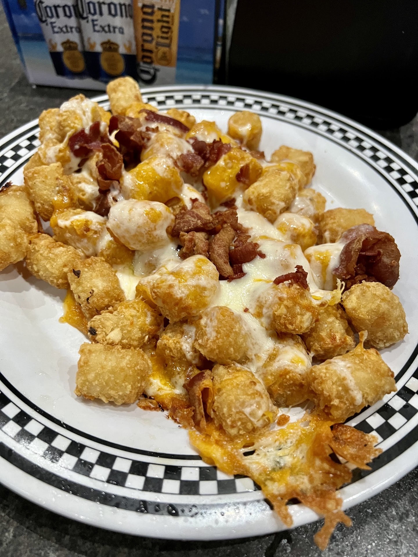 We also almost always get a Three Spot tots. Amazingly golden brown, covered in ooey gooey cheese, and sprinkled with bacon - they’re delicious and great to watch the game with. Which is easy to do on the huge number of TVs as well.