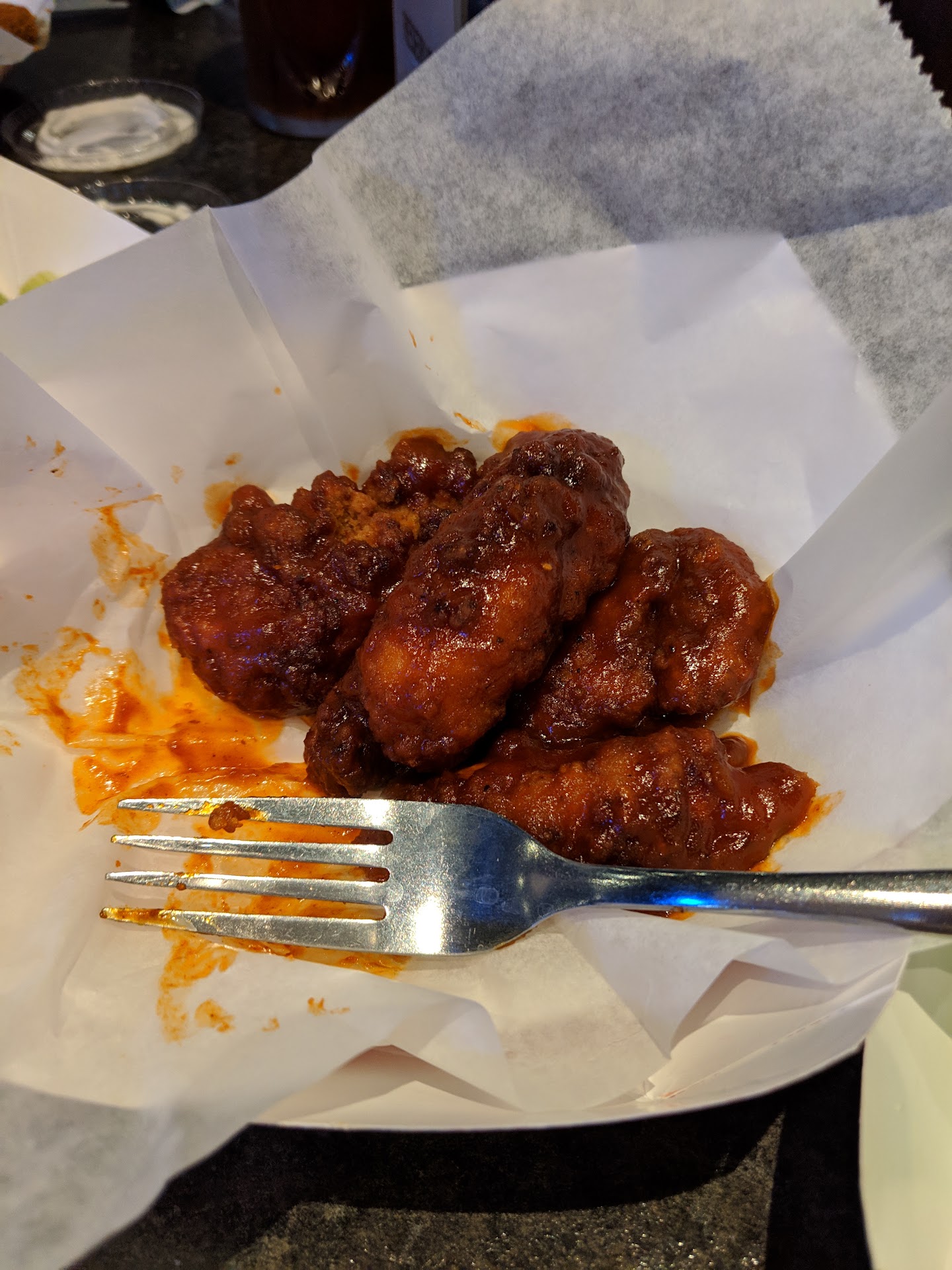 Among our favorite things is the boneless wings, which have a great amount of chicken to the breading ratio. They’re really juicy and well fried, and they have a ton of great sauces. Some of our favorites include the hot, mango habanero, and the sweet barbecue. Sides of blue cheese are extra, but the portion is a good size for even 12 wings. The regular wings are equally awesome if you’re not feeling boneless!