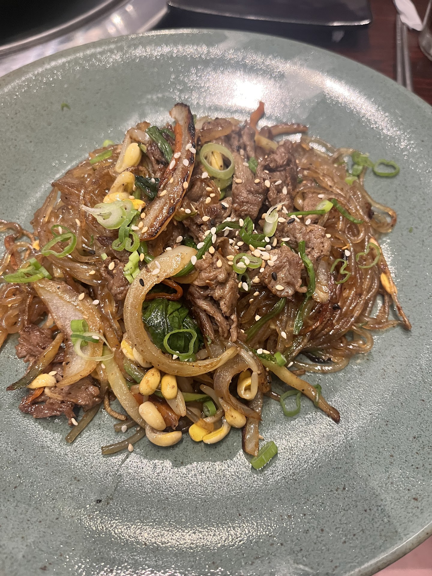The other dish that used the grill was the beef Galbi. These are shortribs that have been sliced and marinated. They do come with some of the bone attached. The owner used scissors to cut them to size and once cooked, we took them to our plates. While the flavor was great, and they were very tender, we really could have used a knife to cut them down a bit more as holding on to the bone and gnawing them with our teeth was awkward at best.