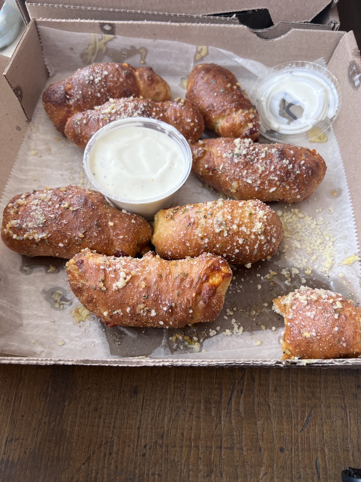 Ā Ā Ā Read moreMe and my boyfriend needed to have our car towed from Fat Angelo's parking lot. The owner - Tom - was so nice and let us leave our car parked here overnight. When we came the next afternoon to meet AAA, we decided to stop in and have lunch here. The inside was immaculate! You could see them making all the tough and putting our order together right there. It was such a large, beautiful pizza kitchen. The food itself - I shouldn't haven't to say more than the pictures- but I will. Pepperoni Rolls - phenomenal!!! Buffalo Chicken Rolls - the best I've EVER had! The dough is crispy on the outside, but thick and doughy on the inside. It has Buffalo chicken pieces (with no fat or gristle on it - this is my biggest pet peeve) and it was cooked to perfection. The homemade ranch sauce just puts it over the top. The Oreo Cinnabons- I felt as though I was cheating on my boyfriend. These things are INSANELY GOOD! Huge cinnamon rolls with Oreos crushed up and places in every single bite! The icing on top, is just that. They even gave us some extra Oreo Cinnabons for having to camp out on their property until the tow truck came.