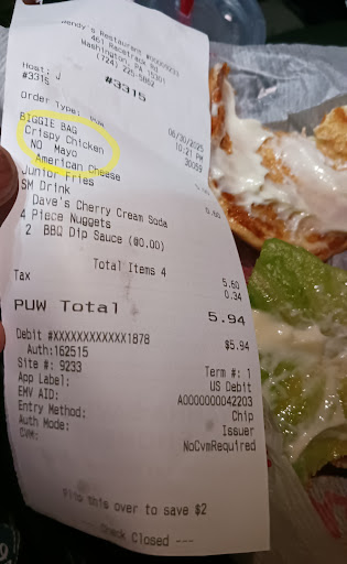 Read moreWaited in line forever for my food it felt like got my food and it was not a chicken BLT four for four had to wait through line again because I couldn't go in and complain inside was closed how to wait behind I think it was three or four cars to go back up and tell them something was wrong I told the speaker and then passed the first window on to the second window which was open nobody being seen I set my sandwich on the ledge thinking someone would come over and ask me but no I sat there for another few more minutes then got my food to top it all off during all that waiting time with the inside being closed due to low staff there was staff walking out of the back of the building to be BS with people I was appalled beings how I have worked for this company it is not a hard job it is very easy training process I found this to be just...