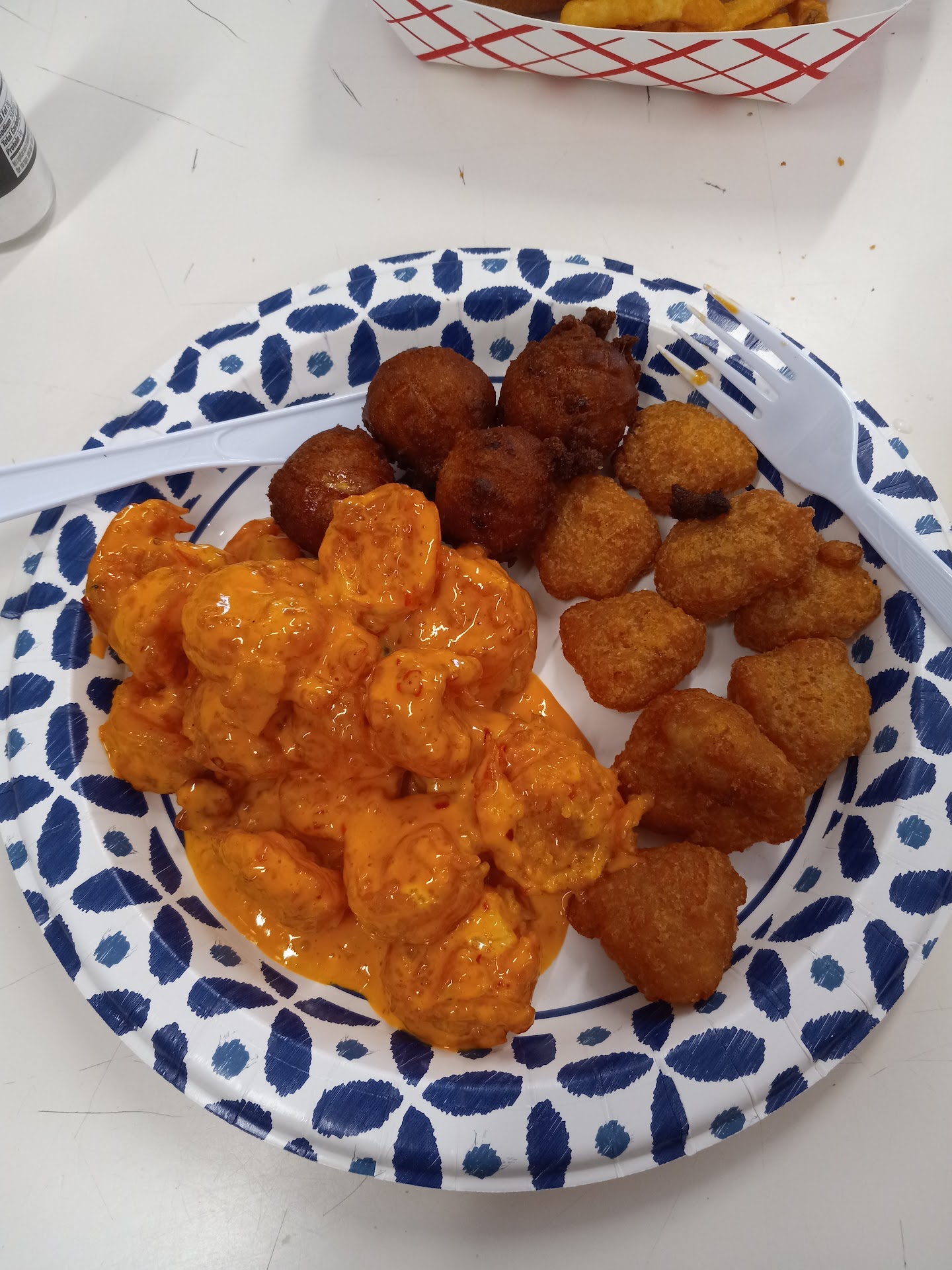 I got the boom boom shrimp plate with fries, corn bites and it came with hush puppies. This sounded like a deep-fried delicious nightmare but it was VERY GOOD! Im from up north so boom boom is a little different everywhere I've learn but this was a great version as well!