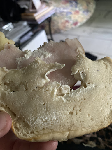 The worst part of the bagel with cream cheese was undoubtedly the bottom piece of the bagel. It was a time frame of 6 minutes from picking up our order in the drive through to getting home and eating our food. The bottom of the bagel was hard enough to put a dent in my wooden door, as my mother tested by banging it against the door, which in turn echoed a loud thudding noise throughout the house. She has dentures so she wasn't even able to chew the bagel, and me with real teeth had great difficulty even considering it edible as well.