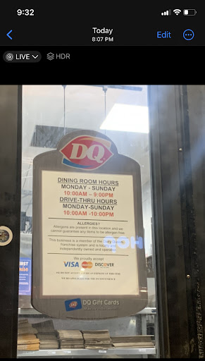 Read moreThis is the worst DQ Franchise. The owner needs to get their act together. There is always a sob story when you get to the drive up window to pay. I ordered a sundae and a blizzard after waiting 1 hour in drive up I was told the ice cream machine was broken. But yet people not in drive up weâre leaving with ice cream. I refused to leave and guess what? I got my order. I was told there were no lids for my sundae. My sundae was melting while they made my blizzard. Unbelievable! I wasnât offered a comp of any kind. No one was wearing a mask or hairnet and the female workers have nails so long they canât even do their jobs. This franchise wonât last if the owner doesnât address bad reviews. I hated to give this place one star because they...