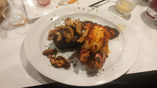Seemed like a nice place. The servers were nice and the management were nice. The steaks were cooked perfect. The lobsters were overcooked. The flavor was there, but tasted like rubber. Very hard to chew and harder to cut than my steak. I declined having it remade. They offered to take it off of the bill. Still overcharged. 3 people, appetizer- calamari $12, one chicken something dinner, two meals of filet mignon and lobster, only listed on menu as market price (current mkt price $27lb for lobster and their menu stated 8oz filet mignon is $39). Although a lobster tail is not a pound, I will still figure they charged us the full pound price. Drinks were two sodas and a glenlivet scotch (12 year was all they had) and decided to get three pieces of cake to go. Bill was $287 Yes I tipped over 20% Dont know what I was thinking. So it would end up being (rounding up to be fair)... $12 appetizer $66 meal one $66 meal two $25 meal three $?? Sodas (1 tea, 1 soda)- no price, their beers are between $4 and $7, so lets say $10? Each? So $20 $?? One Scotch couldn't be more than $25 Total= $214 that would mean each sliver of thawed out cake would have to be $24 and change each for $73! But no, their slices of cake are $6.95 so lets round it to $7