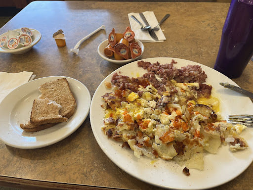 Read moreVisiting from NC and decided to try this place out, was the worst decision of my life, not sure how this place has so many good reviews. First and foremost, the service was alright, the ice tea was just water and the food was not it at all. Me and my friend decided to get the vegetarian skillets with French toast, the wait wasn’t too bad, the waitress wasn’t too bad either but the food we received was. Mind you we ordered the veggie skillets and still ended up with with random pieces of bacon in mine and my friend had a surprise piece of ham underneath the cheese and eggs, we can’t eat pork so that was an unpleasant surprise. We then asked for the waitress and she offered to remake it but we didn’t want to take another chance with their food so we then asked to not be charged since we didn’t even eat the food we didn’t ask for and she told us to wait until she brought over the manager, that older manager (not sure of her name) is very money hungry and just straight up greedy with her customers, she tried charging us $20 for 2 drinks and 2 orders of French toast that we didn’t even eat so I asked her why it was that much and she said she already reduced it from $50 and I just looked at her confused on where she got the price from, if you mess up an order don’t expect the customers to pay for something they didn’t eat, such a stupid idea, just money hungry and disgusting, never again will we go there and will make sure everyone I know never goes there. Maybe the good reviews are from all the old people that can’t taste or are blind because this is the only way I can see someone eating this food.