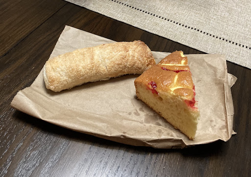 I grabbed tongs and a tray by the entrance. I ended up getting a Pineapple pastry. It had a slightly hard surface. I also got a Vainilla pastry. That one had a soft surface and scattered colors on it.