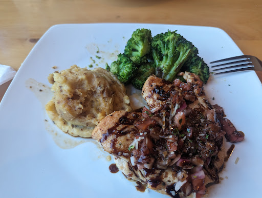 Food was ok, chicken was a little rubbery but tasted fine. Broccoli and mashed potatoes were decent. The Alfredo was very oily and not that great. The shrimp was very gross and we only ate 2 pieces between the two of us. For a $5 up-charge you would expect it to taste a lot better. I would avoid the Alfredo dish altogether.