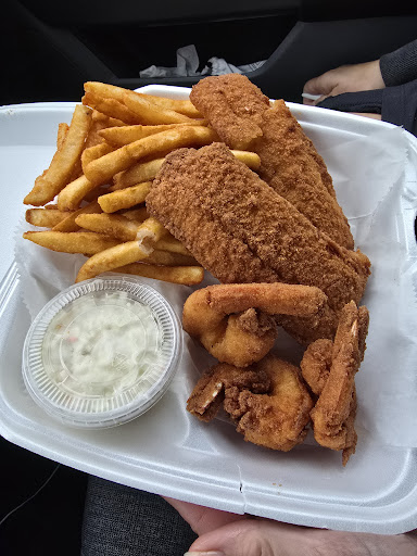 I ordered the chicken and fish mix n match combo, I also got a order of shrimp. The combo came with 3 very nice sized tenders and 2 nice sized fillets of cod. (They also serve catfish) The sides were fries and coleslaw which were both delicious and the shrimp were a great size and fried perfectly. All of the food was hand battered and fried in a very clean open view kitchen. The portions are very generous and itโs worth the money. Also the seasoning they dust their food in outshines the sauce the light salty tangy and zesty flavor had me putting away my dipping sauces. On top of hand breaded fried food they go one step further with friendly service and homemade desserts and a large menu. You should be able to find something for everyone here and I would definitely recommend them to anyone looking for home cooked flare in...