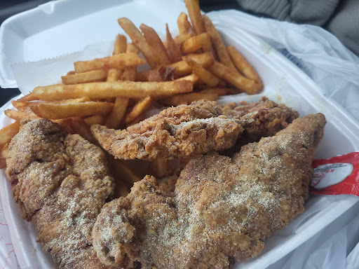 I'm a newcomer to this place and I always wanted to try it and thought the reviews being perfect would clearly be fabricated somehow. I tried it the other night on a whim and called 15 minutes before they closed, which I never do, always give a full hour before close time to order. He was very kind and professional and thought I would come back. They use that white seasoning (like Adobo) alot of fish fry places use at times but this one is a little different, better maybe. I have not tried the fish yet but we will, the fries are decent, a large order is plenty for 5+ people, depending. I'm a chicken tender guy, and I'm telling you, dude makes a dynamite chicken tender. With that corn starch type thin crispy but not overcooked thin breading with some darker tones but not overcooked, like I thought at first. Why spend 25-30 bucks for a 12 piece KFC chicken tender meal when you can get 15 hot, fresh, well seasoned, juicy and perfectly cooked homemade tenders for 35 bucks? Sometimes you gotta go cheap cheap but a couple extra bucks for something made that someone cares about is worth it, if you can handle it. I'll update on the fish and other small items later but so far. Two visits in the same week just to make sure I wasnt just hungry the first time.....nah, you snap that first tender open, twist it and it snaps apart into a little bite size piece and its steamy and juicy, nah. Let me stop. Dont want to go to jail. I will say this though, only critique. Work on the sauce game. Regular vinegar red hot sauce, regular bbq is a cute way of saying your chicken doesnt even need sauce, cuz I can not use it and it's cool. But you come up with a few homemade sauces. A buffalo sauce cooked up, a horseradish life-like sauce, a gold bbq, a vinegar bbq, extra hot for someone crazy, just maybe like 4 or 5 sauces and you got something really going. Appreciate ya. Good luck with the business....