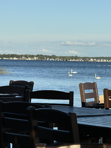 Visited for lunch yesterday with family as I am new to the area and heard good things. The setting is beautiful- the area was busy with activity, lots of unattended kids running around, but 50% of the tables were available. We had a few minutes to wait to be seated. We then waited about 10 minutes for a server to get our beverage order (soda and tea), and while we ordered appetizers, they appeared 25 minutes later with our entrees. I had the portobello grilled cheese with sweet potato fries- the sandwich was tasty, but the fries were overcooked to the point of being inedible. My sister ordered a bbq chicken sandwich but she received a burger, so she waited another fifteen minutes for her correct order to show up, without the bbq sauce. Thankfully she had the appetizer (shrimp cocktail) to munch on while she waited, and she said it was good. I also ordered a couple maki rolls to carry home that were $12 and $13 dollars each, respectively- they were worth $7 at best- something that could be purchased from the sushi case at a supermarket. Back to the unattended kids- a server carrying hot food to another table almost fell due to said kids running around underfoot. I've got no issue with kids in restaurants, but a brick paved patio, a lake pier, a busy restaurant and half naked toddlers running amok doesn't mix. For the pricing and environment I expected better food quality, a better experience and a quieter ambiance than the kids play area at a fast food joint. Our visit lasted an hour and a half for lunch, 60% of the time was waiting, which to me is not acceptable for a...
