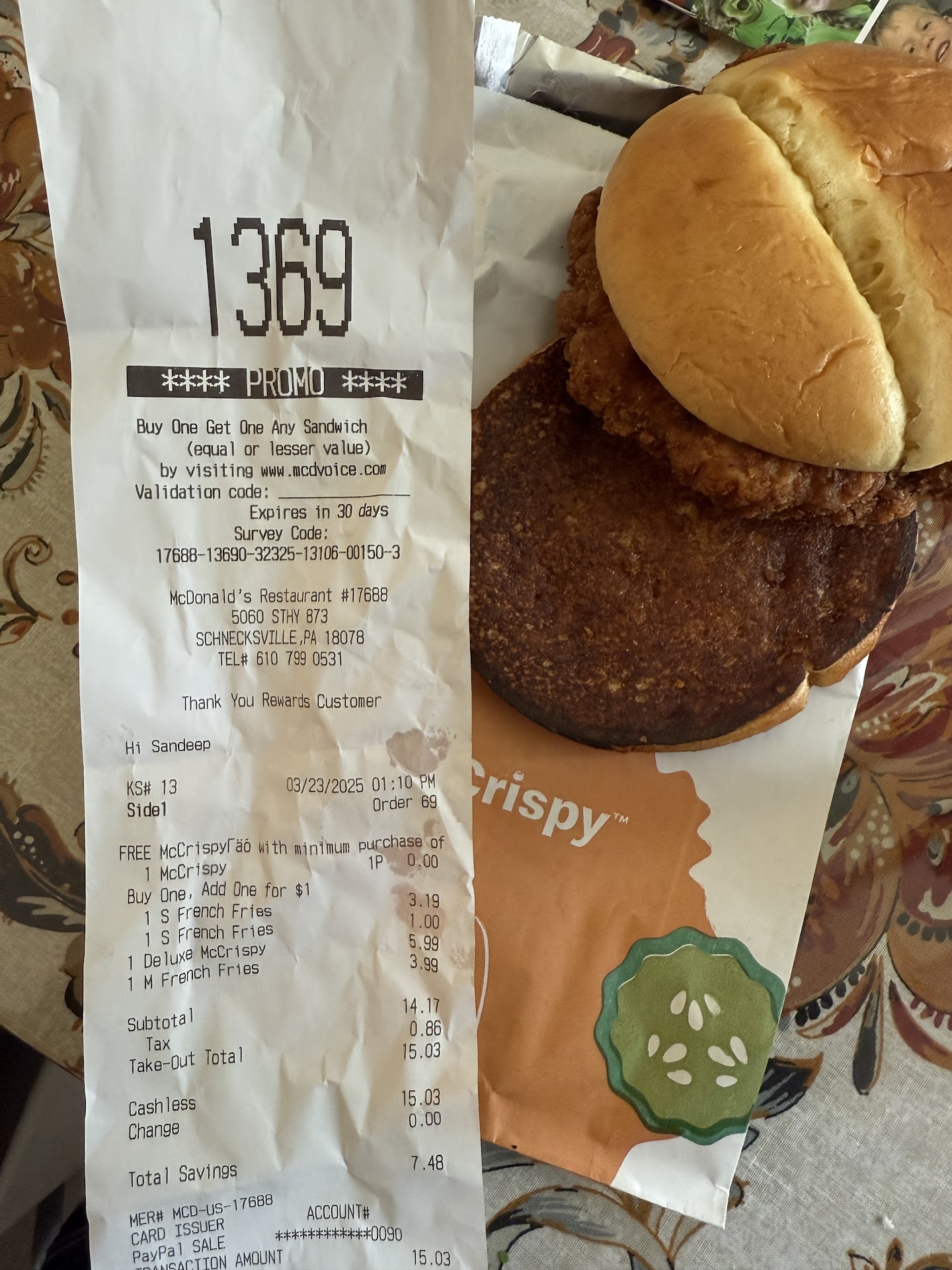 Read moreAnother update... Lunch today... QPC. Bun was so very stale... C'mon... Your charging what a sit down does... Nuggets cold and hard as well... Things need to be better...