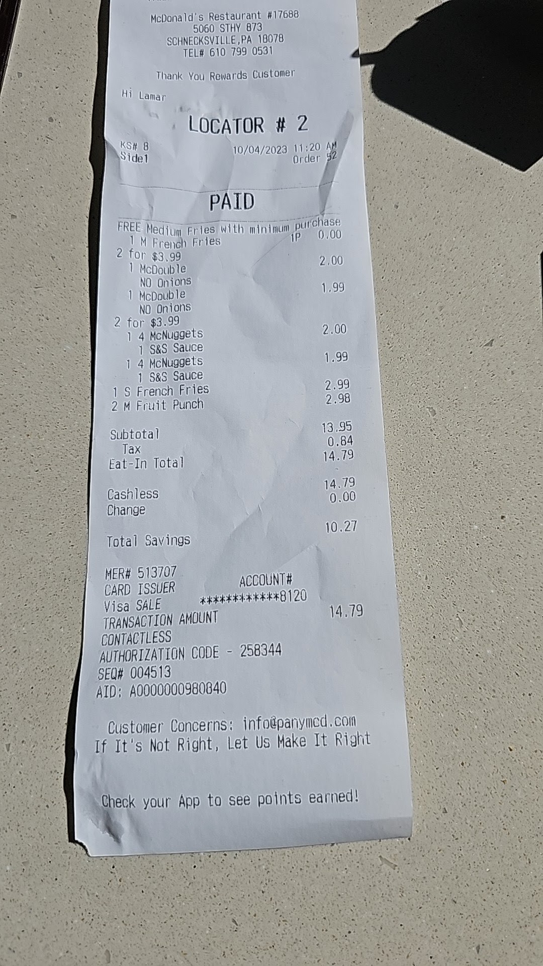Update on my previous reviews... Went to get a quick bite the other evening.... The Big Mac the Mrs got was awful... Stale bun... Too much sauce... No lettuce... Greasy... Just not right... My filet o' fish was a bit better but the double cheeseburger was a mess... Very greasy just thrown together luckily we were eating in and I could put it all back together... How about paying people enough to have and keep a job so that they might stay. Big Mac meal used to cost $2.99 with 7.25 minimum wage... Now it's over $11. And wages are not 4x what they used to be... And...