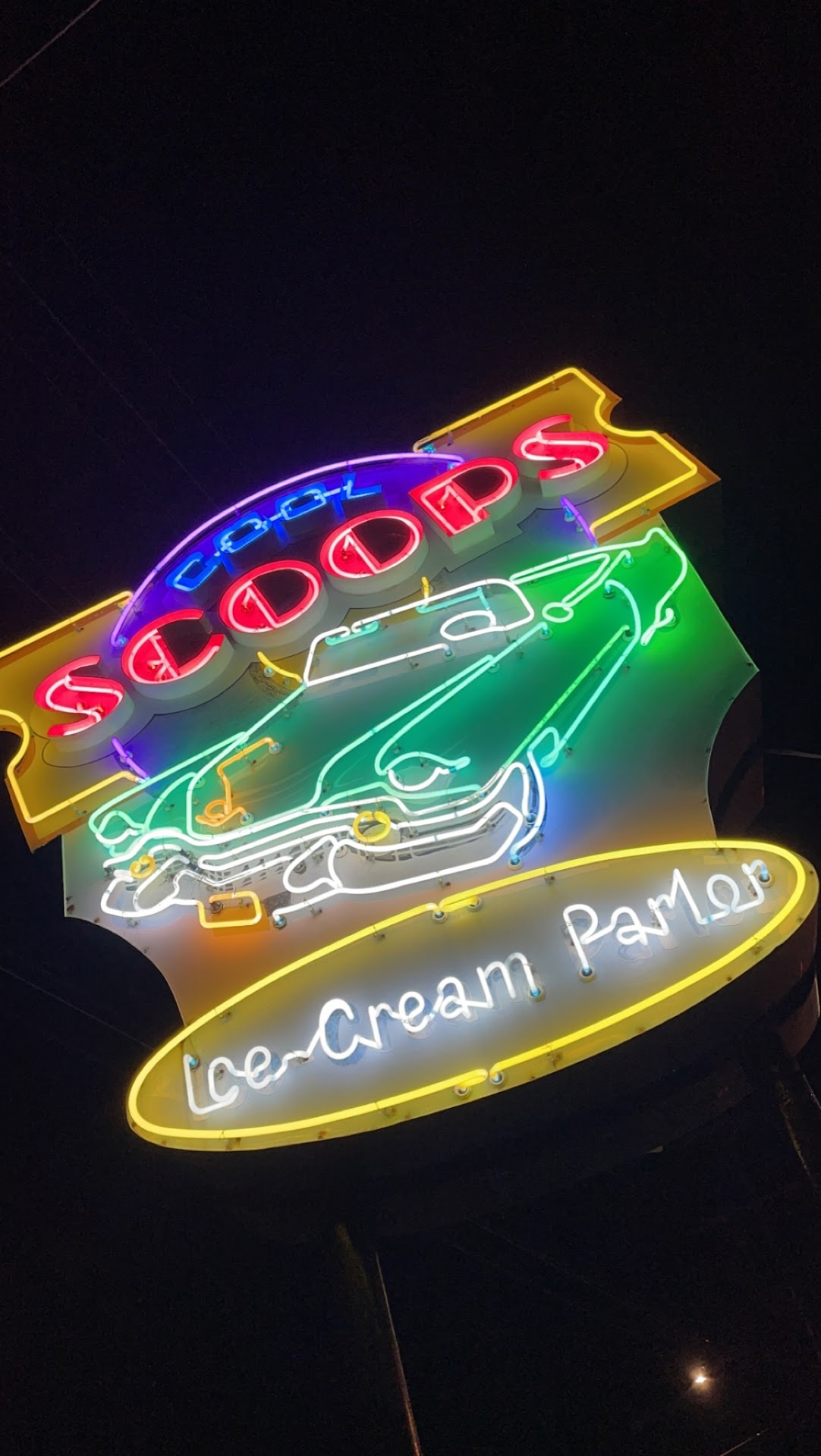 This is one of the coolest,sweetest, most fascinating places to visit. Where do you even begin..Everytime you turn your head there is something else to see that just makes you smile from from ear to ear..Such a cool 50s- early 60s vibe, they have not neglected any details of my younger years...even right down to the bathrooms!!! In the ladies room there are such things as a pink hair salon chair and the rotary phones we used to remember...Throughout Scoops there are "halved" cars in those delicious creampuff colors I wish would return again..Well, speaking of delicious let's not forget what this place is all about- the Ice Cream...They are so wonderful they even had a non- dairy option for me as a vegan and my family loved the "regular" options..so many to choose from. On a personal note..we have been traveling to Cape May/ Wildwood area for 12 years now and always make Friday night the Wildwood Boardwalk night..I am afraid to say this year they really put the WILD in Wildwood...during a pandemic, many- many without masks..no attempt at social distancing which I get in that atmosphere is difficult, but at least wear a mask.Cape May was just the opposite..People much more respectful of one another. It hurts me to write this because we always have a lot if fun on the Boardwalk every year, but we had to leave within a half hour it was so awful...but all was not lost because we found this Oasis in the desert known as Scoops and all was right with the world again.. I would like to personally like to thank the people of Scoops for making sure ALL safety rules were followed and they made everyone feel really good and safe being there..Such a...