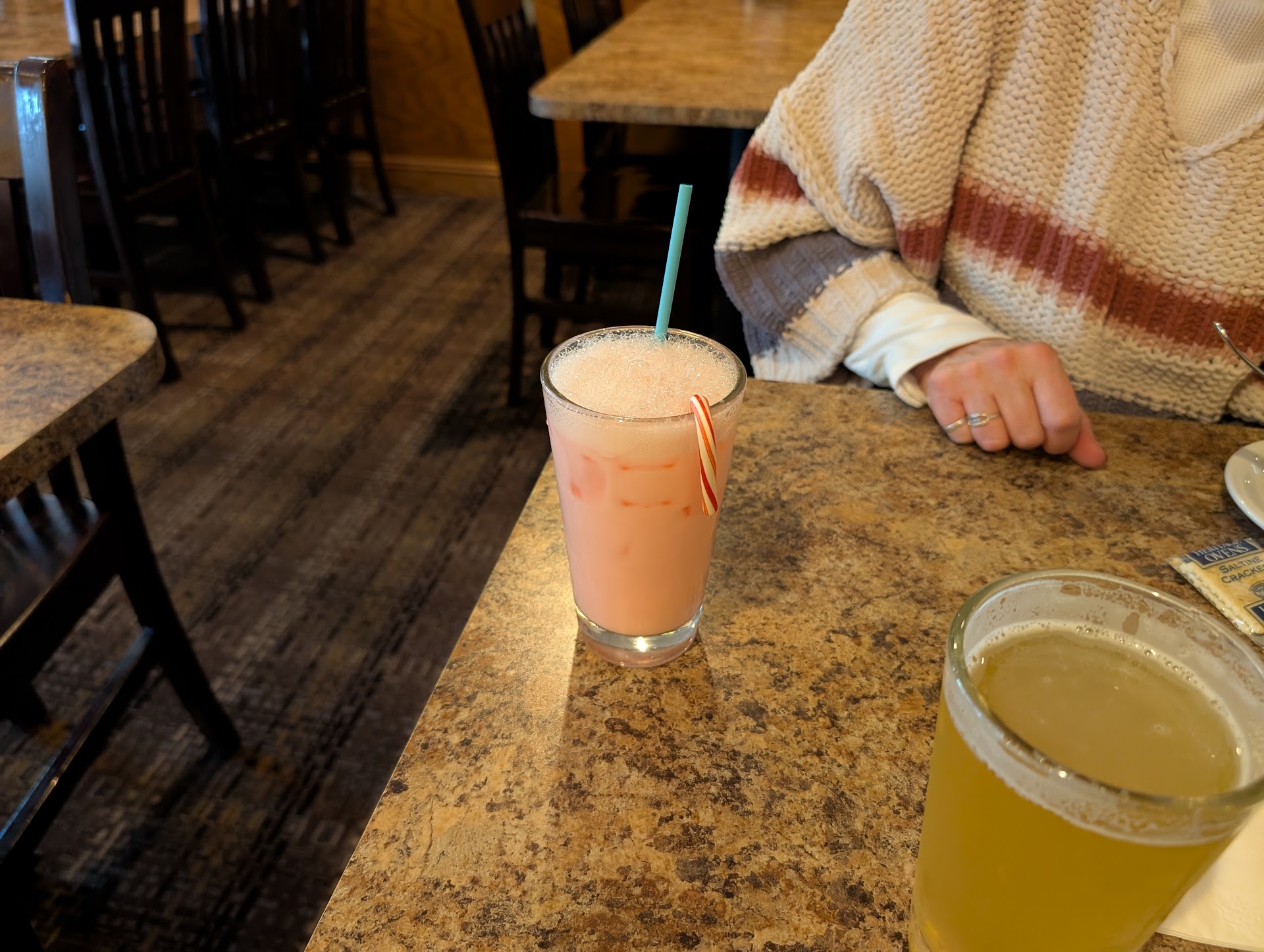 We went for dinner, off season. This is a cash only restaurant, but they have an ATM in the bar/restaurant. There are two entrances. The one on the left takes you directly into the bar and there are tables alongside the bar. You may eat at the bar. The other entrance takes you directly into the restaurant. You can move from one room to the other through openings in a wall and you can see from one room into the other through a glass panel above the wall separating the rooms. We entered the restaurant and were seated immediately, even though we arrived at 7:30 on a Saturday evening on a busy weekend. The bar was packed. There was only a table or two open. It was loud from music and voices but we could still hear each other talk, as long as we spoke a little louder than normal. The food was good, although I had a huge portion of mixed green beans with a few carrots tossed in, which they called mixed vegetables. They were still cooked the way I like them, but not seasoned. The meat was a little small, as compared to other restaurans. My daughter and I ordered blackened salmon with roasted red peppers, and it was cooked perfectly and delicious. I opted for a second vegetable, cole slaw, which was pretty basic. My daughter got French Fries for my 2 yr old grandson, who seemed to like them. He loved the pasta. My husband had chicken parm with pasta, and while it was good, the pasta was a small portion. My son-in-law had the crab cakes, said they were very good, as were the roasted potatoes. Both men's meat portions were good size. We've been there before and will return...