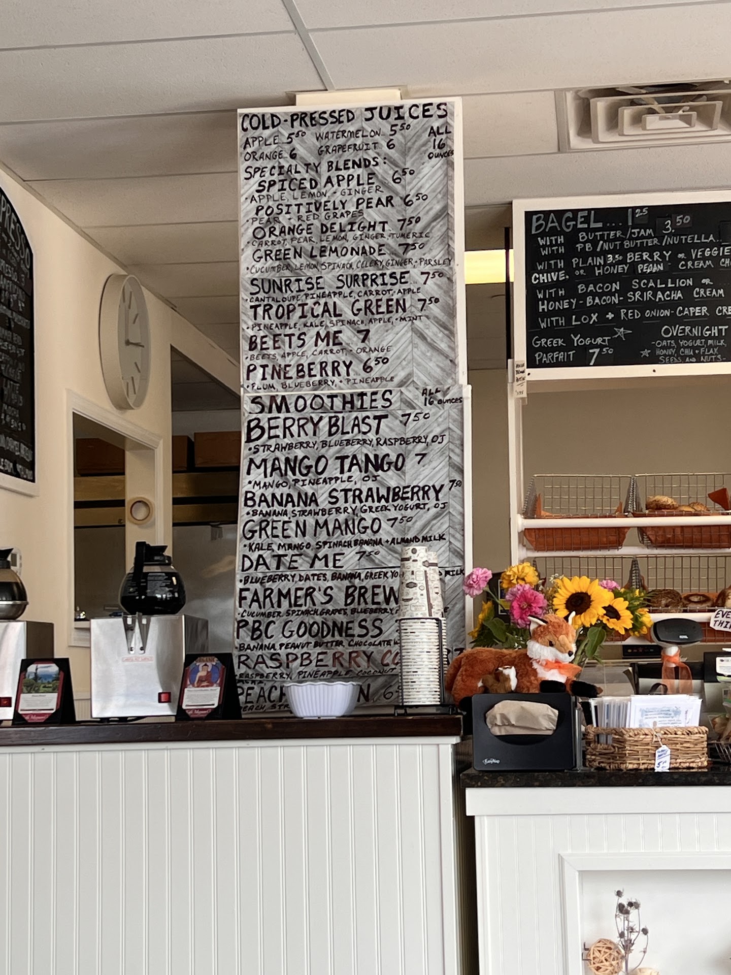 Read moreCool little coffee joint we passed by that sounded cool and had good reviews so I said lets check it out. Now we went in the morning around 10:30. We got a vanilla iced coffee and a watermelon juice with 2 cookies the peanut butter cup and lemon blueberry. Everything was delicious! I felt the vanilla flavor plus the cream added enough sweetness to the coffee without needing sugar. They have a station with different creams and sugars available I was happy almond milk was amongst the selection. One random thing that's cool but not that cool though was our paper straws. which I get are eco friendly but actually using them in the disposable plastic cups they started the cave in the middle and fall apart. both drinks had to have the straw removed making the cup intended to be portable a little more of an inconvenience by having to take the lid off my iced coffee every time I wanted a sip. Now of course this of course reflects poorly on the straw and not the business! The wild fox cafe was super cool. The drinks were delicious as were the cookies and everything else looked good. They have a very cool vibe I really felt like I could just come in and take a load off there. Definetly seems like a real cool spot and hope to...