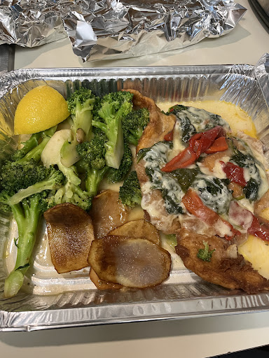 My Dad and I both really enjoy the lemonade chicken, he substitutes more potatoes in place of the broccoli. However, I like the broccoli so no substitutions for me. You will receive good size chicken cutlets with roasted red peppers, spinach, cheese, garlic, broccoli and thin cut potatoes. The picture I posted of the lemonade chicken after I had already started eating it.