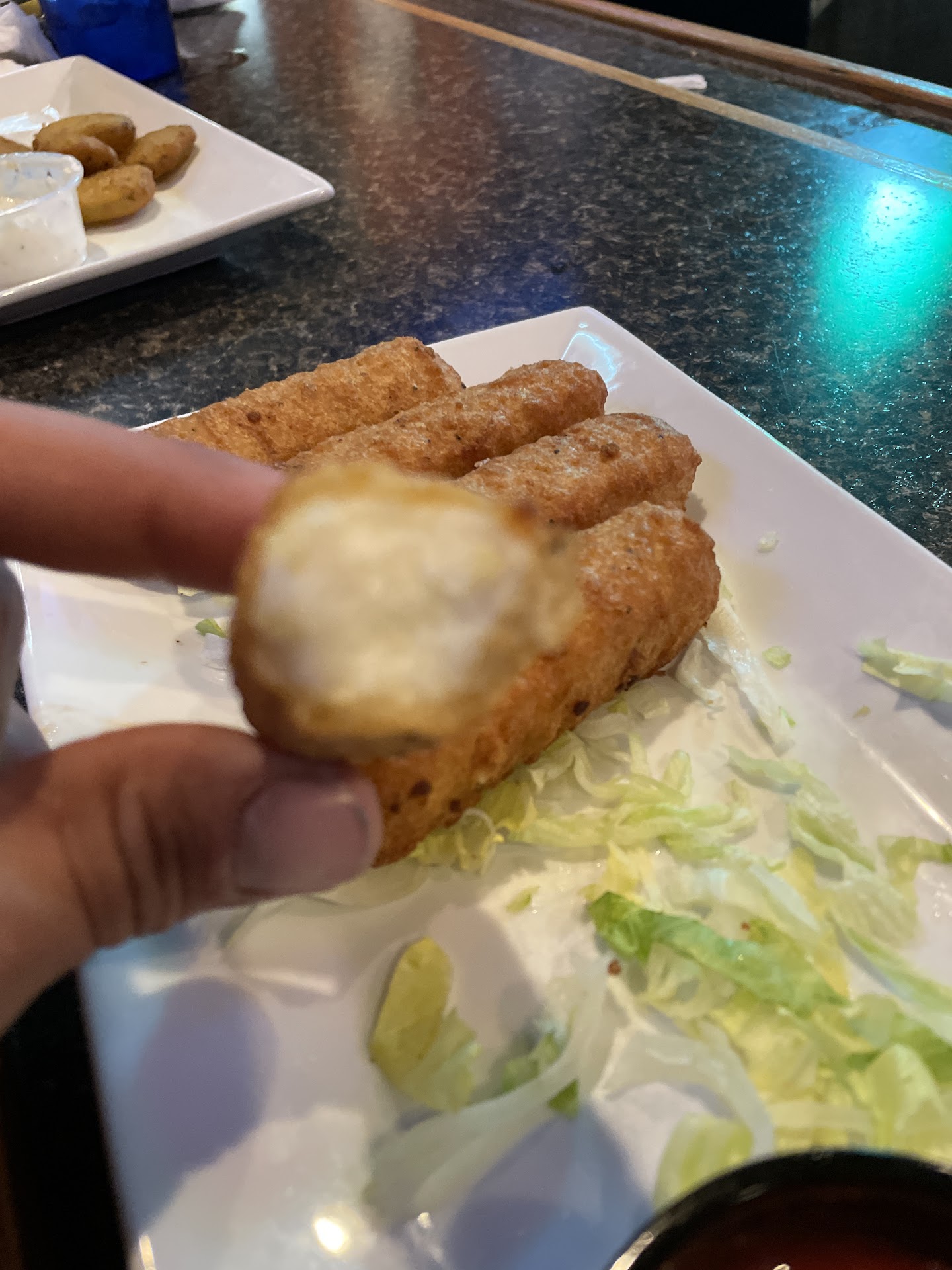 We ordered the bone in wings. No breading and 25 for $35 dollars. BIG plus.