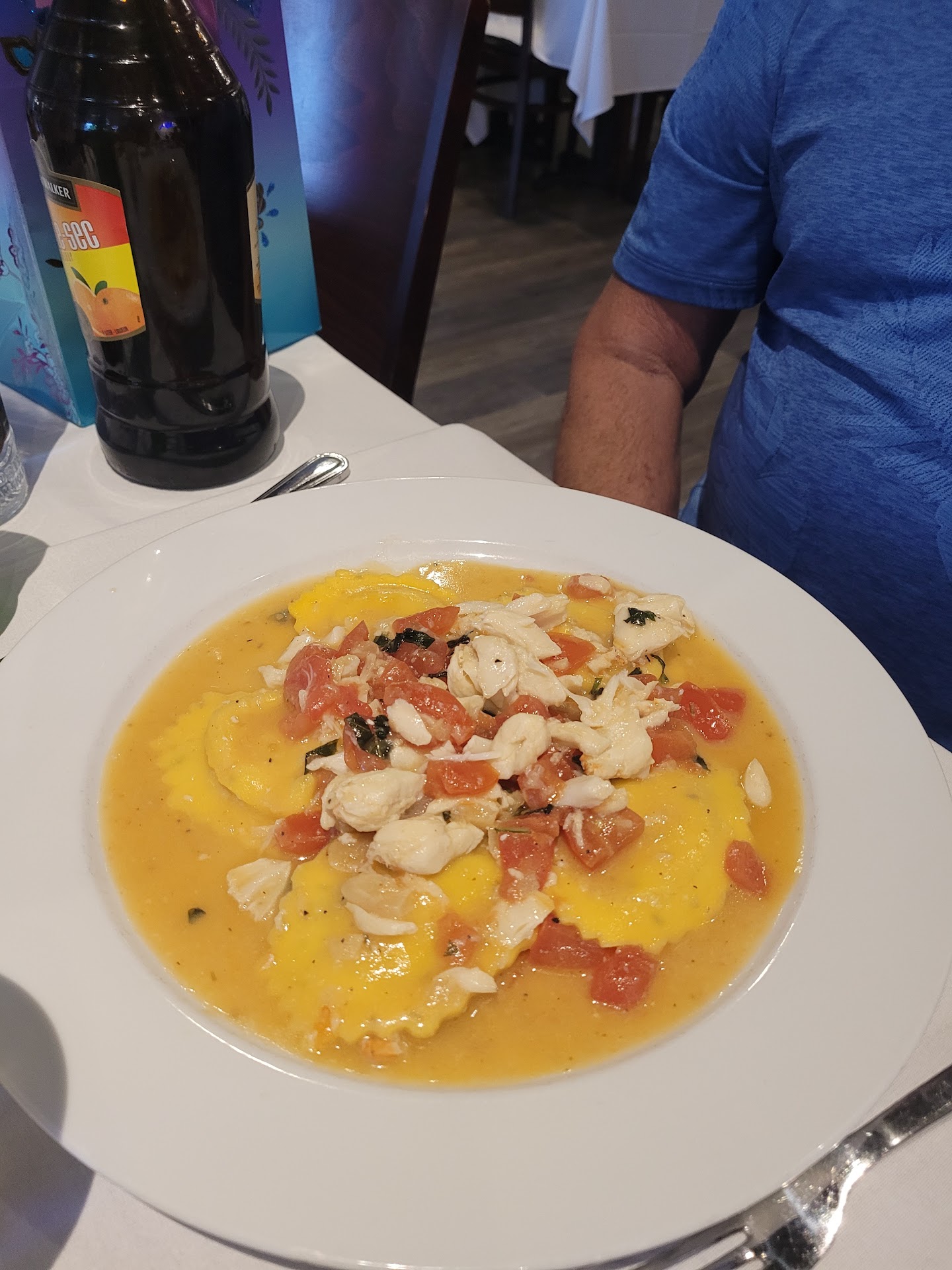 Soup and appetizers were both great. We had the crab bisque, and a stuffed fried zucchini blossoms special. Soup was very rich and had a spicy kick. I thought it could have been heated through a little more. The fried zucchini blossoms were light and delicious.