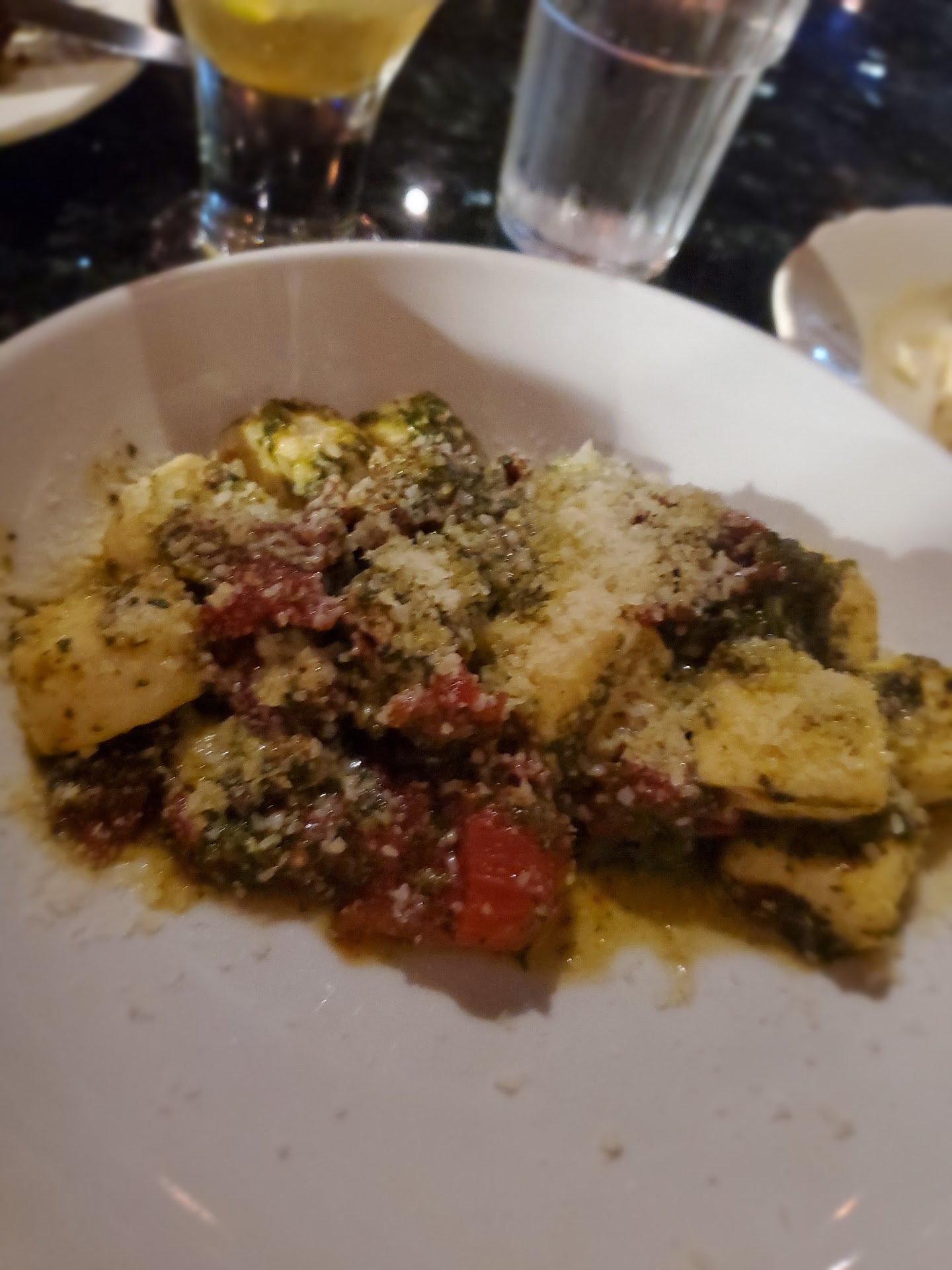 We ordered the maple roasted squash tapa which was autumnally delicious. Our main courses were also superb: I ordered the best cacio e pepe Iâve ever had with sweet corn and pea sprouts. My partner got the confit duck leg with roasted apple, caramelized onion & fennel, farro, thyme, rosemary cider glaze.