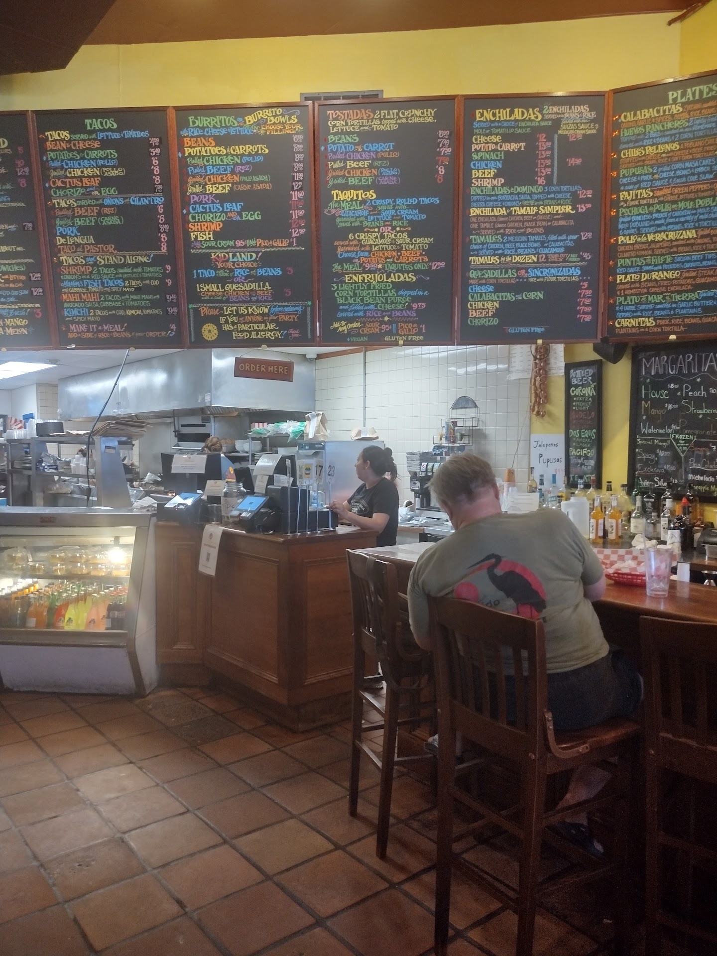 Read moreI am just not sure how this is getting such high praise unless it's for the lovely salsa bar or maybe the drinks are just really killer (admitting we did not try tacos or alcohol). What we did have were bland carne burrito, and some "meh" chicken enchiladas. Everything was just relatively okay, with mushy rice. The stand out items were really good guacamole and very tasty refried beans, but I was expecting to like more than the guac and beans. I hadn't been here in over a decade but I couldn't remember why....it's coming back to me now. Nothing is terrible, it's just all so...bland. you really need those salsa bar salsas. The atmosphere is nice, staff were fine, but it's an order at the counter, seat yourself type place with no real flow, so Everytime you get up (salsa bar, bathroom, napkins, etc.) you have to cut across the line of people who are trying to order at the counter. The design isn't great. I want to like it...