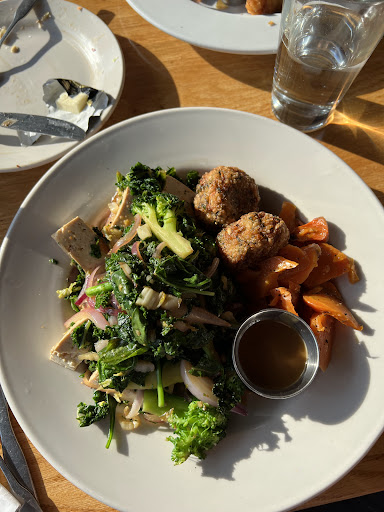 Read moreDined here a few times, as they have more options that can accommodate my unusual food allergies than most restaurants do. In addition, this place is great because the food is wholesome! The common perception is that they are exclusively vegan fair, which is not the case. My carnivore partner and I always found satisfying options, with good whole grains, and lots of veggies. I am experimenting with meat alternatives, so I gave a tofu salad a try. I was quite disappointed for the salad to arrive with delicious crunchy croutons next to fridge chilled chunks of tofu. I certainly don't enjoy uncooked tofu now. The dressing itself had little flavor (garlic vinaigrette?) I do not recommend this place based on the quality control. Two separate occasions I found hairs cooked into my food, which I did not bother to complain about. The last and final time we ate there, my fish was loaded with worms (cooked, of course, so likely safe to consume but oh so unsavory!) The waitresses nonchalant response when I complained was even less appealing than the worms: "oh, this is just the price we pay for fresh caught fish" as she looked at me with pity for not desiring to consume parasites. Well rats, the search is on again for a...