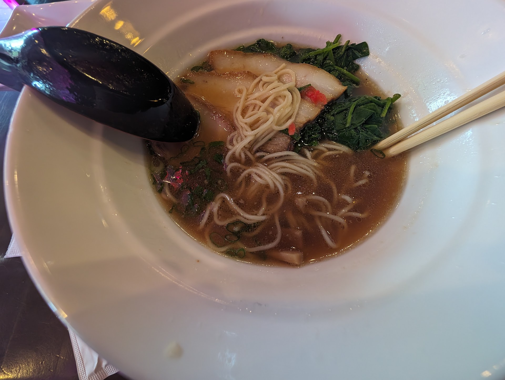 The first sign of trouble was when my gyoza were brought out 5 minutes before the ramen. They are a side dish not an appetizer. While this isn't inherently bad it is an indication that dedication to traditions of ramen service are "not on the mission statement" for this establishment.