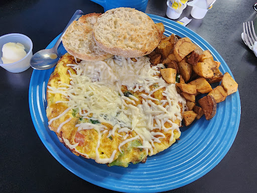 We were seated right away but unfortunately that was the only thing quick about our experience. I had to double check that my pancakes were in fact GF because they didnât taste GF â come to find out that yes, the batter was GF, but they cook everything on the same griddle. Which is why I was immediately feeling sick to my stomach. My brother ordered the Spinoccoli omelet with an english muffin; the omelet looked more like a frittata. Also my brother found 2 mold spots on his english muffin, and as he is highly allergic to mold, his entire meal was then ruined.