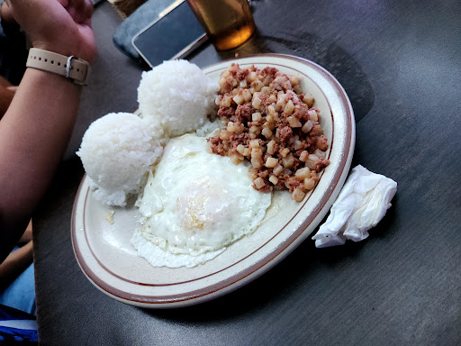 born and raised in hawaii and moving here i always heard of this place. passed it to and from XO market shopping. but this day i returned from a flight from guam on business. it was rainy and wanted to dine at Java Joes but was blocked by CUC utility trucks and police traffic control at it's entrance for repairs...it was very windy, rainy Saturday morning flight...flight attendants had to stay seated for entire flight from guam/saipan because of pilot's orders and bad weather...everyone's dishes that passed by looked really good and atmosphere pleasant but clean. however, service is slightly quicker than my experience at himawari. himawari greeted customers entering unlike this place. but once inside, getting an order in himawari next to impossible because they were so busy. J's had customers in all the booths and front counter...middle tables not so much...i ordered steak/eggs over easy/fried rice wife wanted longanisa and garlic fried rice...but it took 10 minutes after the initial order for the waitress to tell me no steaks this day...they were out...i asked to substitute steak with plain hamburger steak med/rare like for my steak...she took the order and later brought our order. i guess i didn't pay attention [egg not eggs because i thought i read steak and eggs (plural)] also hamburger was well done beyond medium, maybe due to health regulations no medium-rare burgers sold as ordered, plus covered in gravy that wouldn't be poured on a steak in original order. 1 thing i learned from cctv and youtube videos is NEVER send back a mistaken order back to a cook/chef in a restaurant. you don't know what may happen after complaining of someone's cooking or possibly mistakenly interpreted order not written down on paper for verification. personally i cannot remember a phone # told to me 1 minute beforehand. after removing majority of unordered gravy drowning my 'steak' i could use A-1 & ketchup...it could have been an off day for this restaurant but majority of customers looked local...i probably looked like a tourist being part hawaiian/mostly asian. the crispy pata others ordered remains to be eaten at later date and...