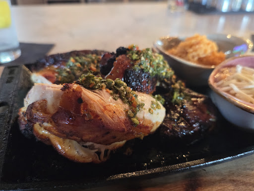 Pollo Adobo al Carbon came on a sizzling plate and looked great! As is normally the case the chicken breast was a touch dry and the thigh and drumstick were both juicy. Menu said it came with a side of chimchurri sauce but it wasn't on the plate. The chicken definitely needed come kind of sauce. Came with 3 corn tortillas but when eating half a chicken, it should come with 5-6. Mexican beans were too wet for my liking and beans were ok.